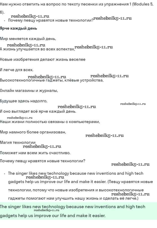 Решебник 2 / Song Sheets Spotlight (модуль) / 5-6