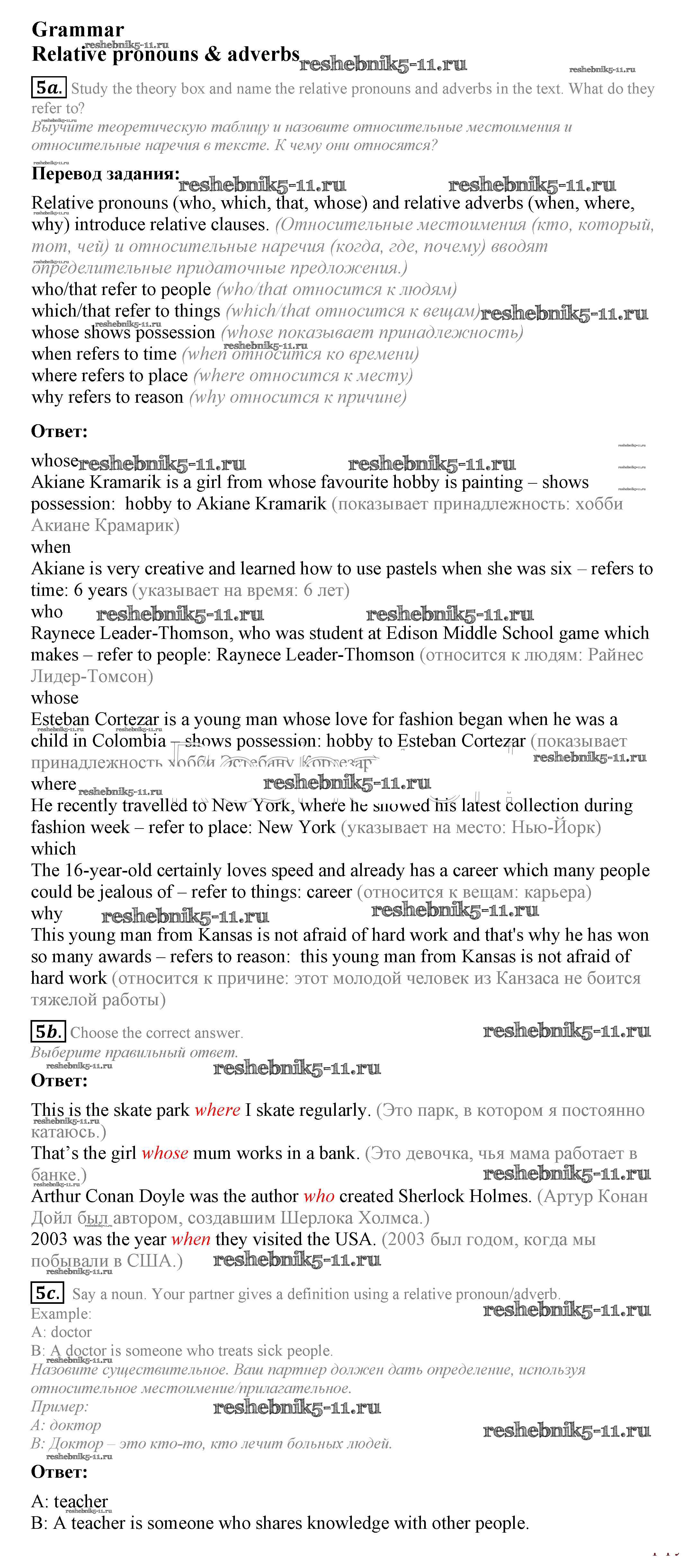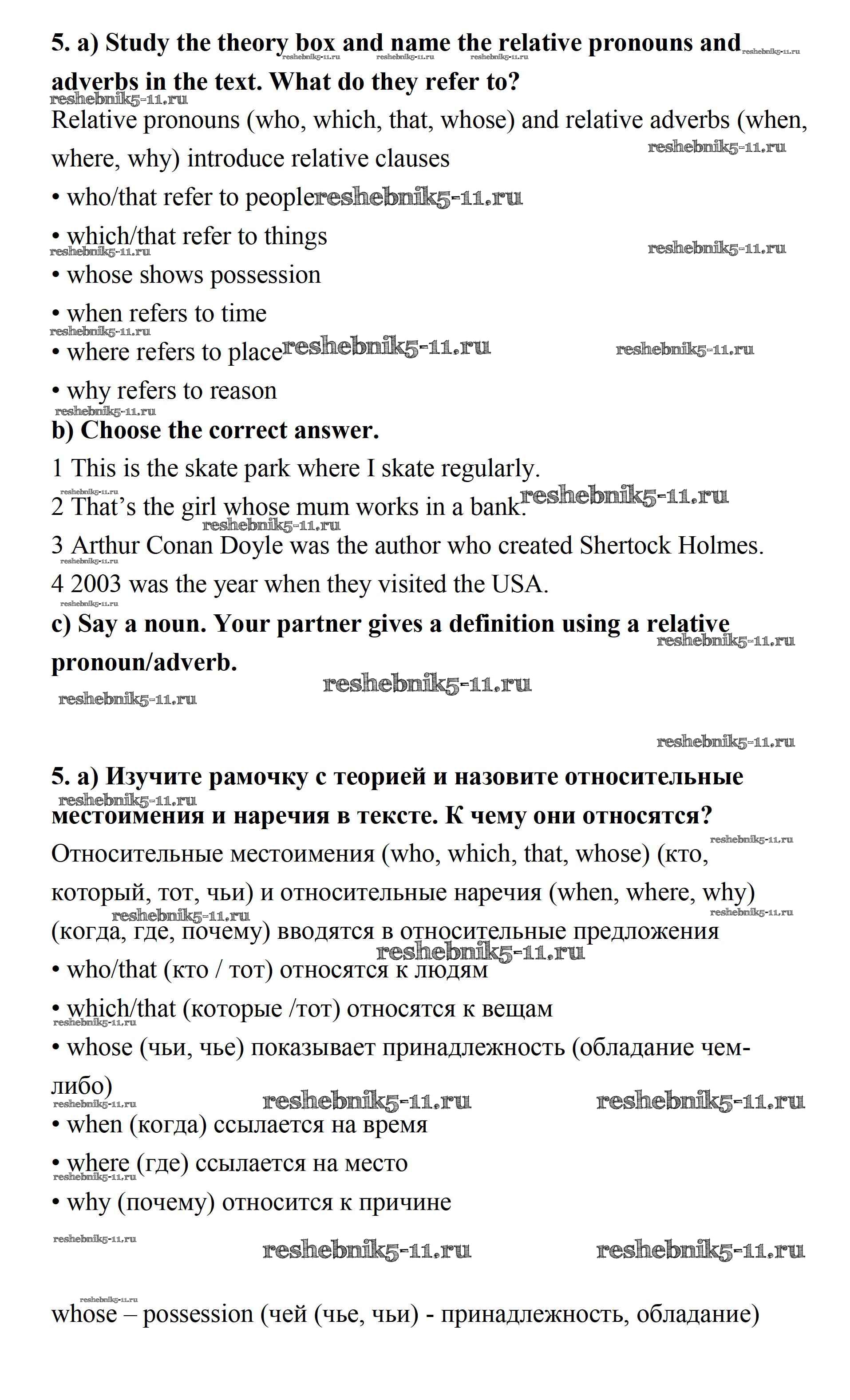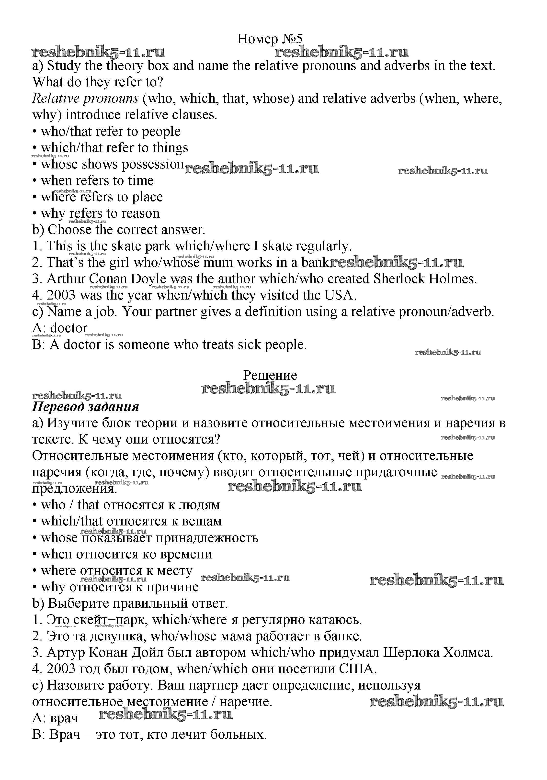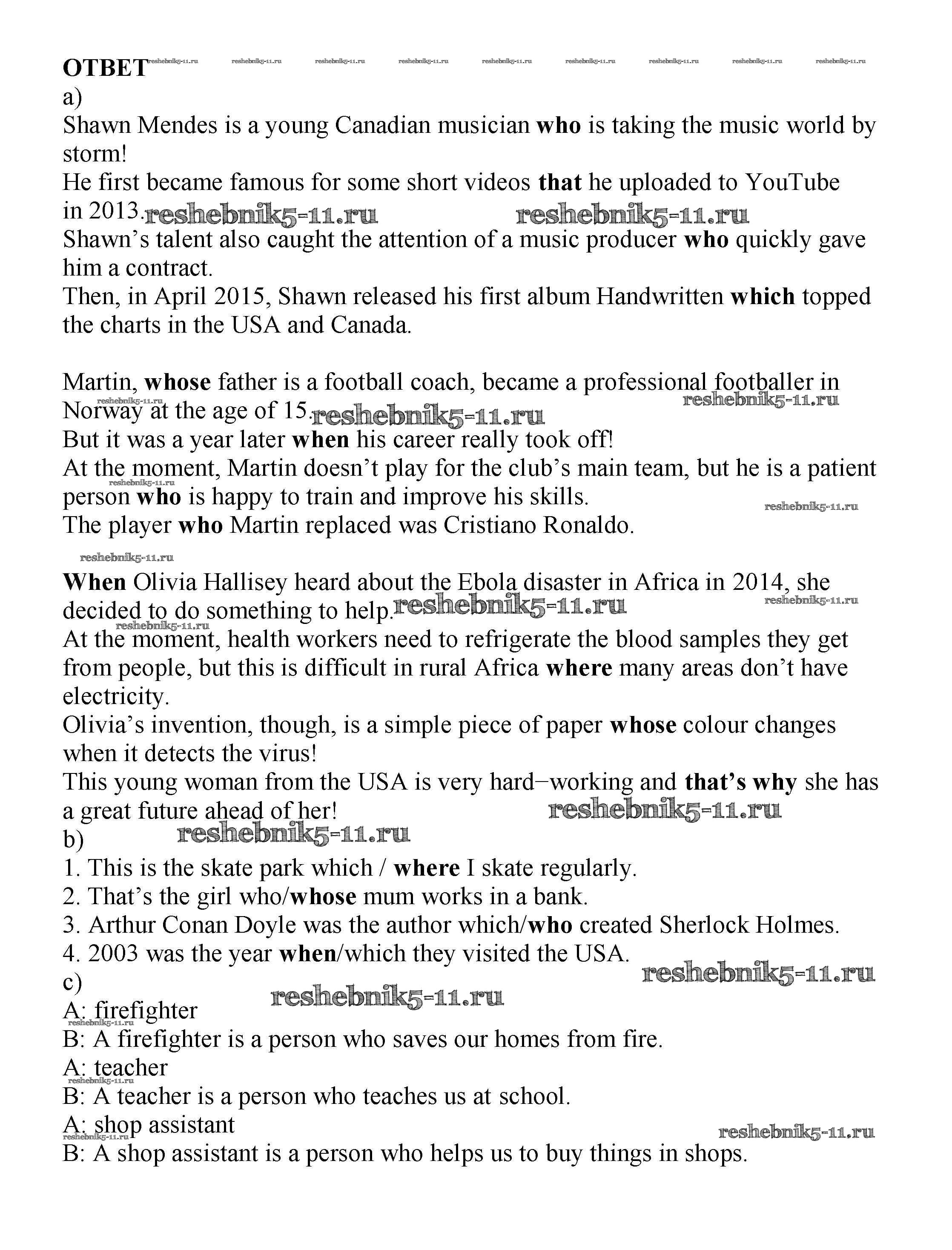 Готовая домашняя работа с ответами по Английскому языку за 7 класс Ваулина, Дули, Эванс, Подоляко Учебник Spotlight Просвещение 2019 ФГОС - Часть 3a 5