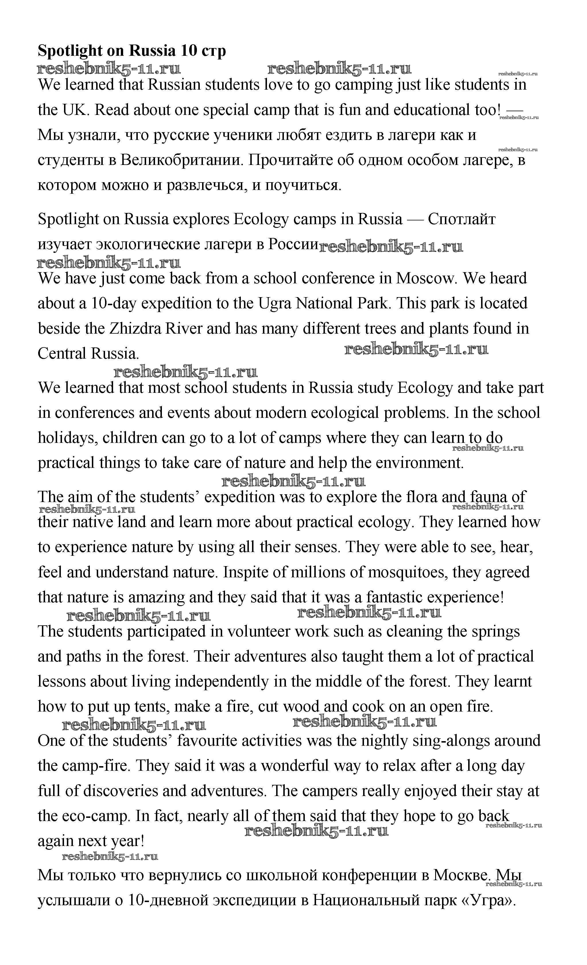 Готовая домашняя работа с ответами по Английскому языку за 7 класс Ваулина, Дули, Эванс, Подоляко Учебник Spotlight Просвещение 2019 ФГОС - Spotlight on Russia 10
