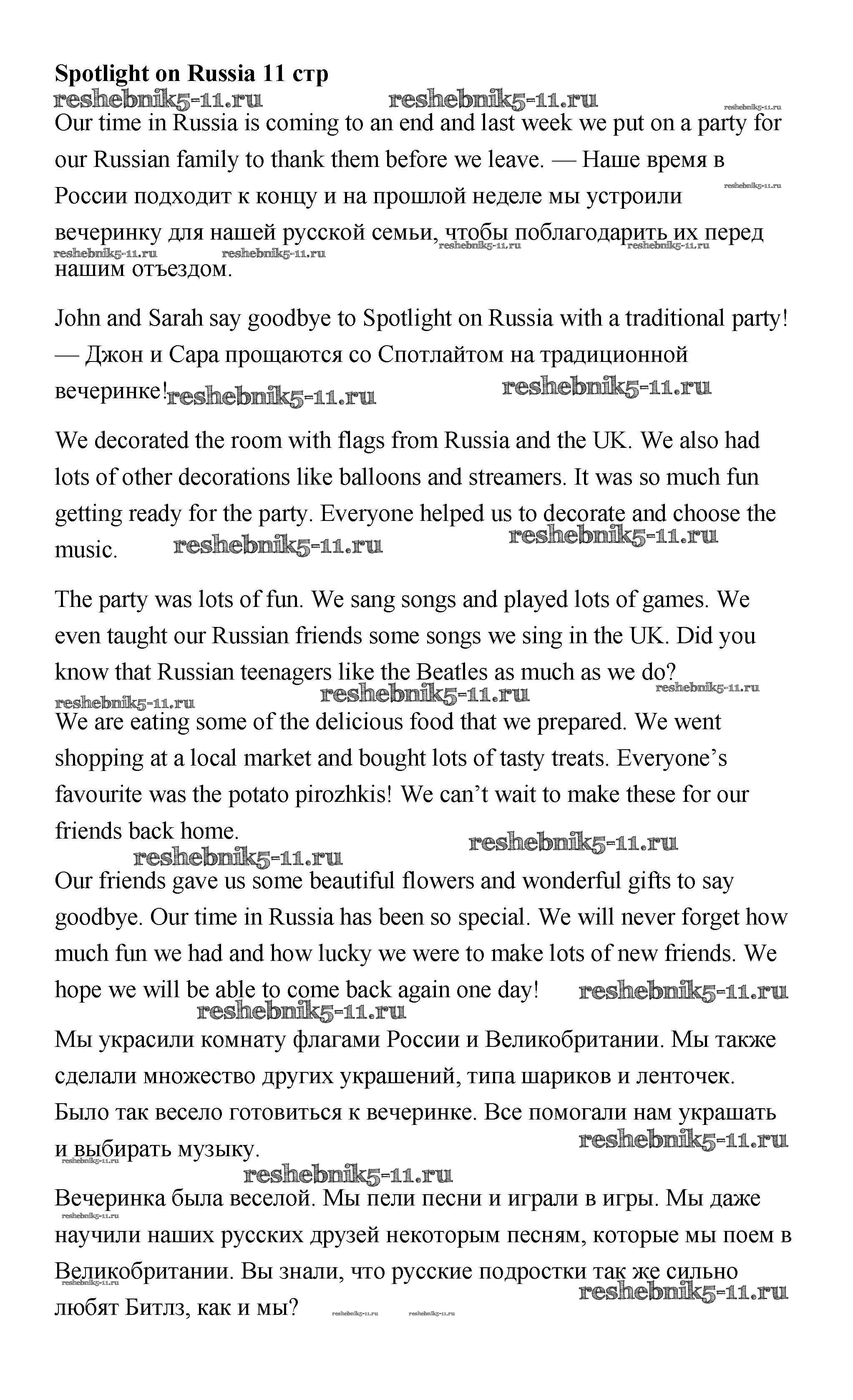 Готовая домашняя работа с ответами по Английскому языку за 7 класс Ваулина, Дули, Эванс, Подоляко Учебник Spotlight Просвещение 2019 ФГОС - Spotlight on Russia 11