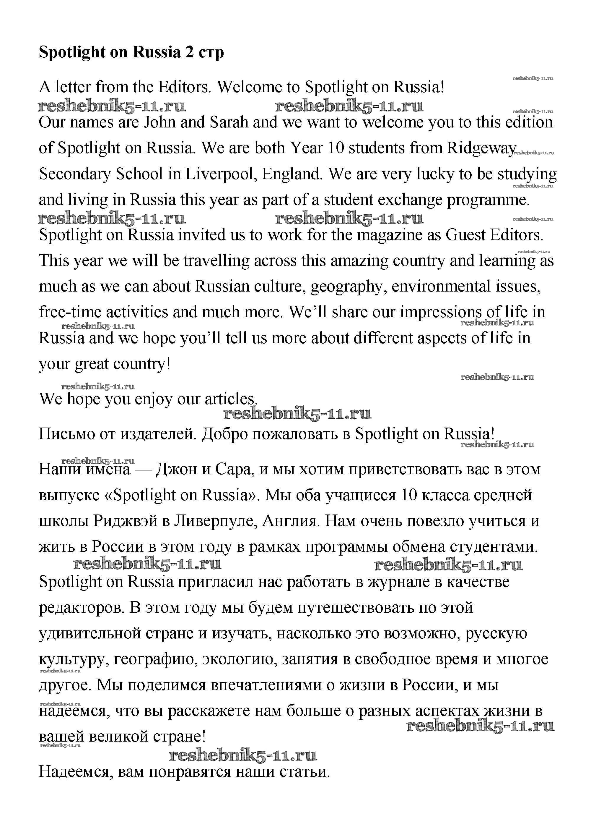 Готовая домашняя работа с ответами по Английскому языку за 7 класс Ваулина, Дули, Эванс, Подоляко Учебник Spotlight Просвещение 2019 ФГОС - Spotlight on Russia 2