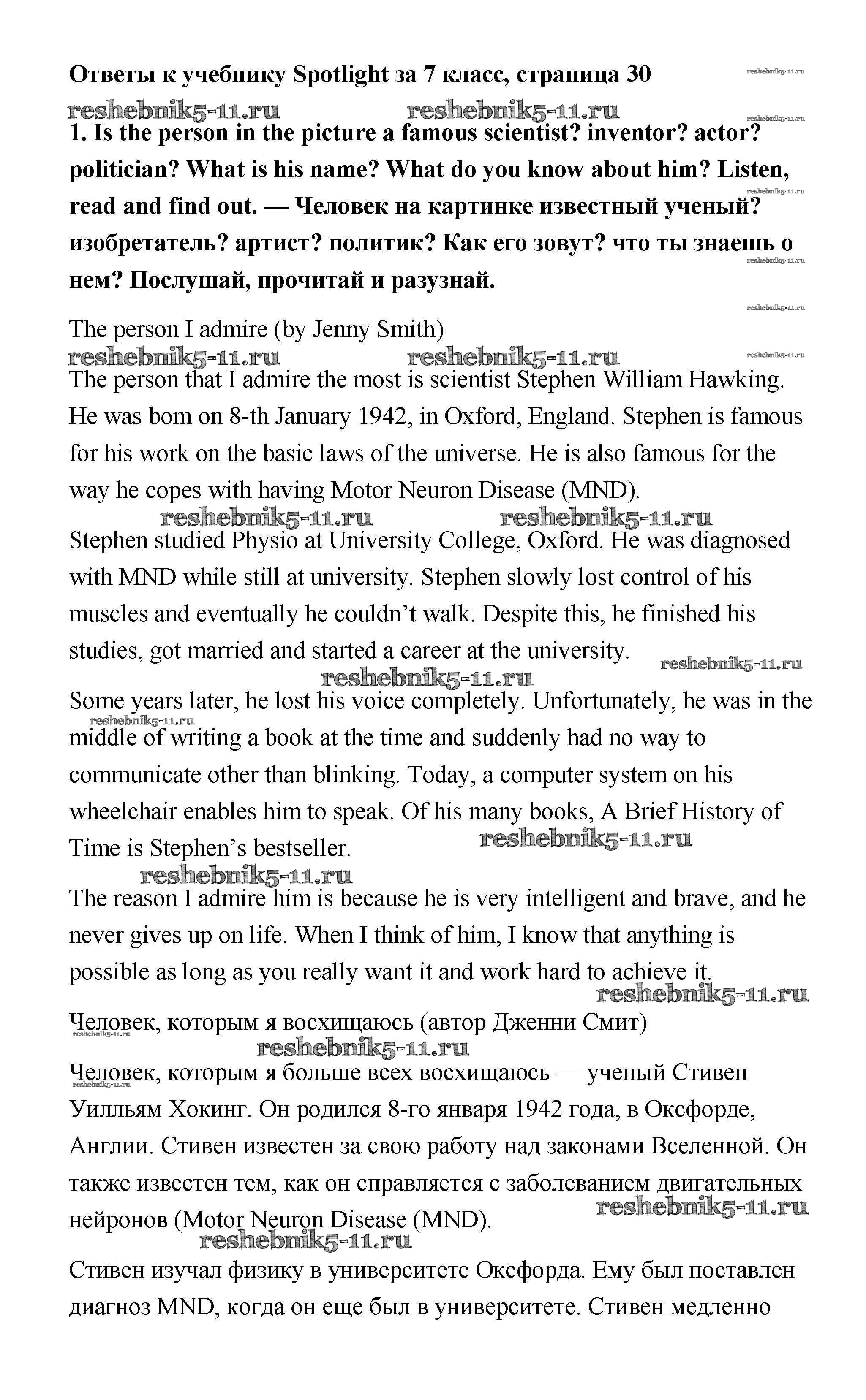 Готовая домашняя работа с ответами по Английскому языку за 7 класс Ваулина, Дули, Эванс, Подоляко Учебник Spotlight Просвещение 2019 ФГОС - Часть 3c 1