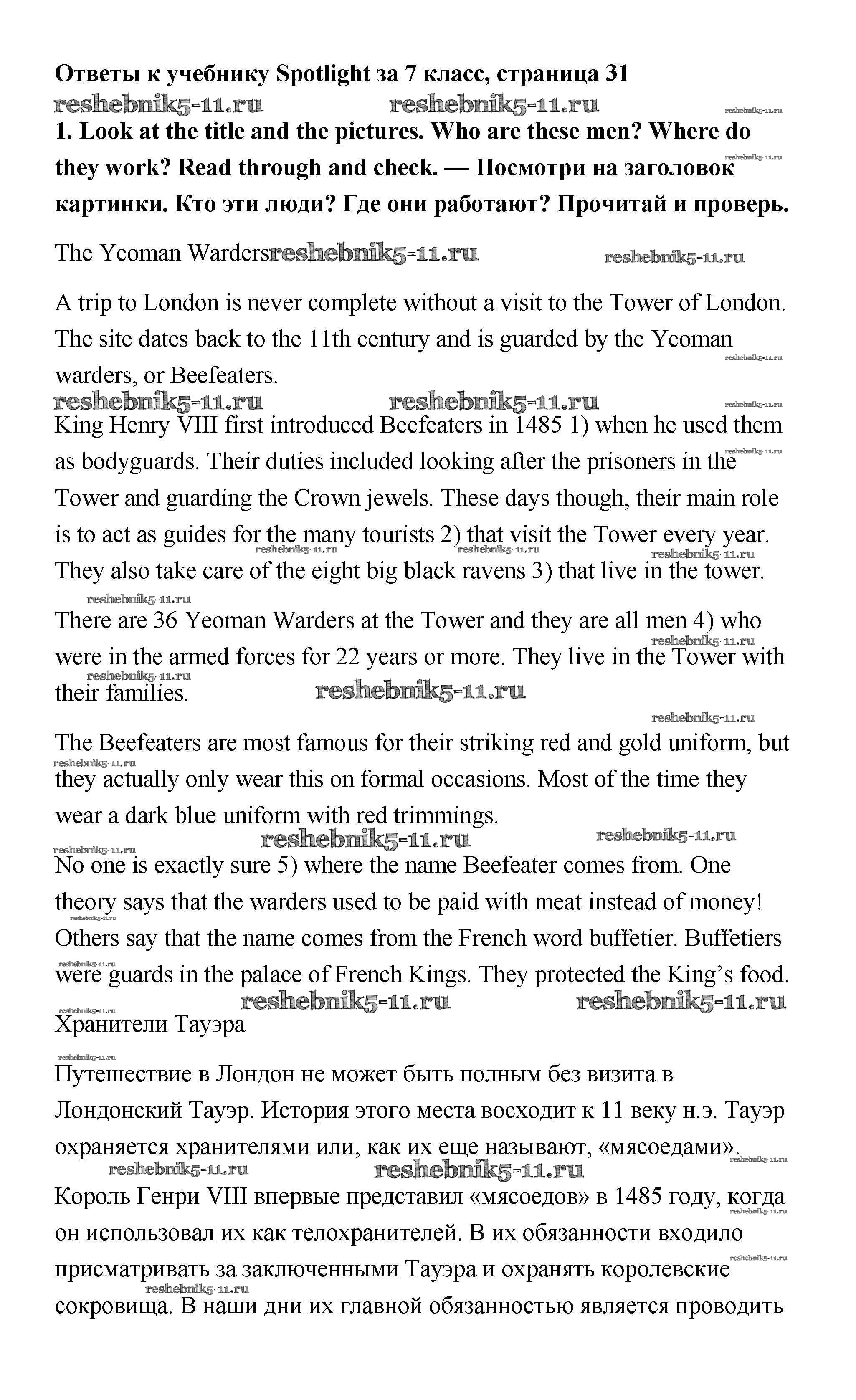 Готовая домашняя работа с ответами по Английскому языку за 7 класс Ваулина, Дули, Эванс, Подоляко Учебник Spotlight Просвещение 2019 ФГОС - Часть 3d. Culture Corner 1