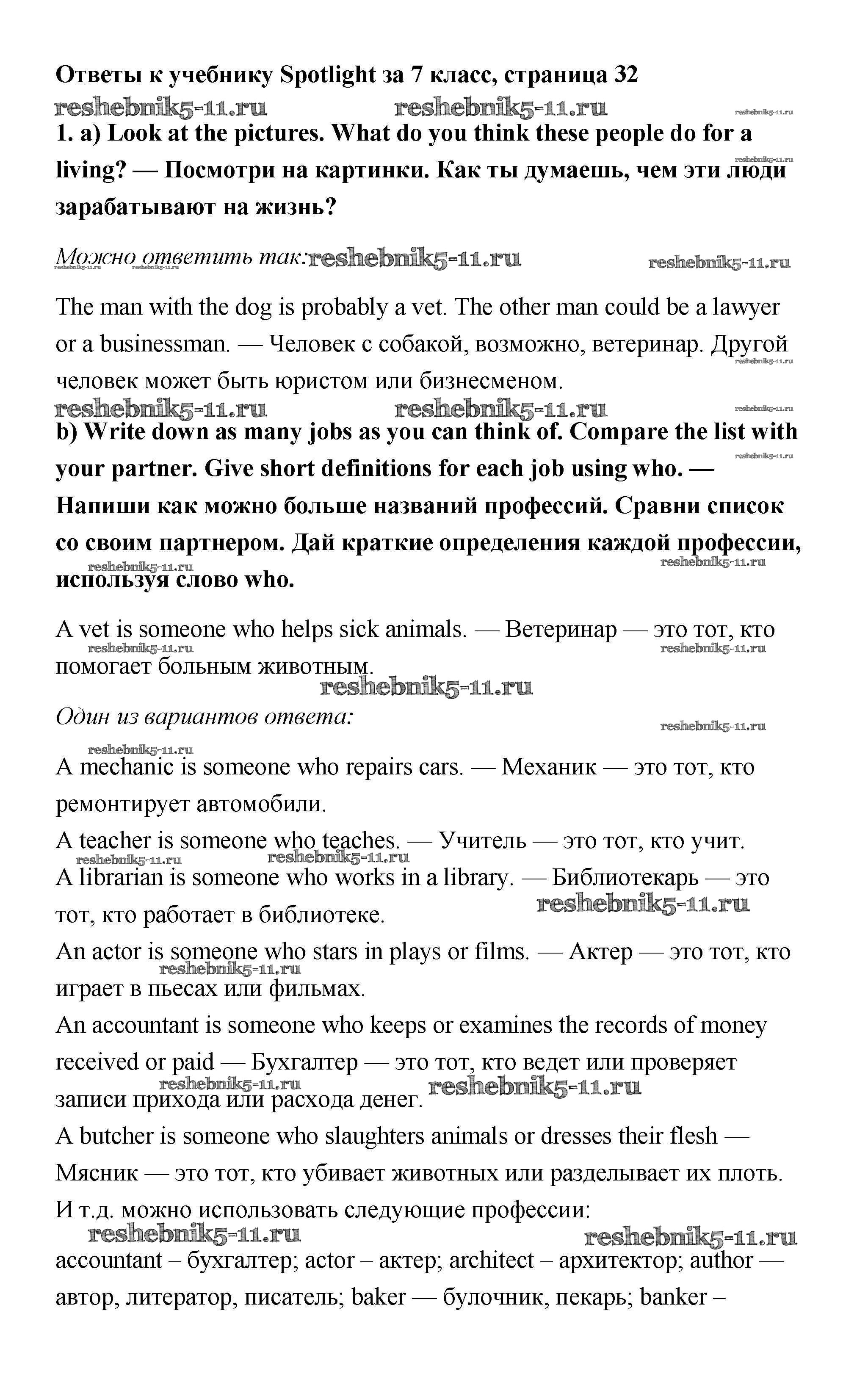 Решебник 1 / Spotlight / модуль 3 / English in use / 1