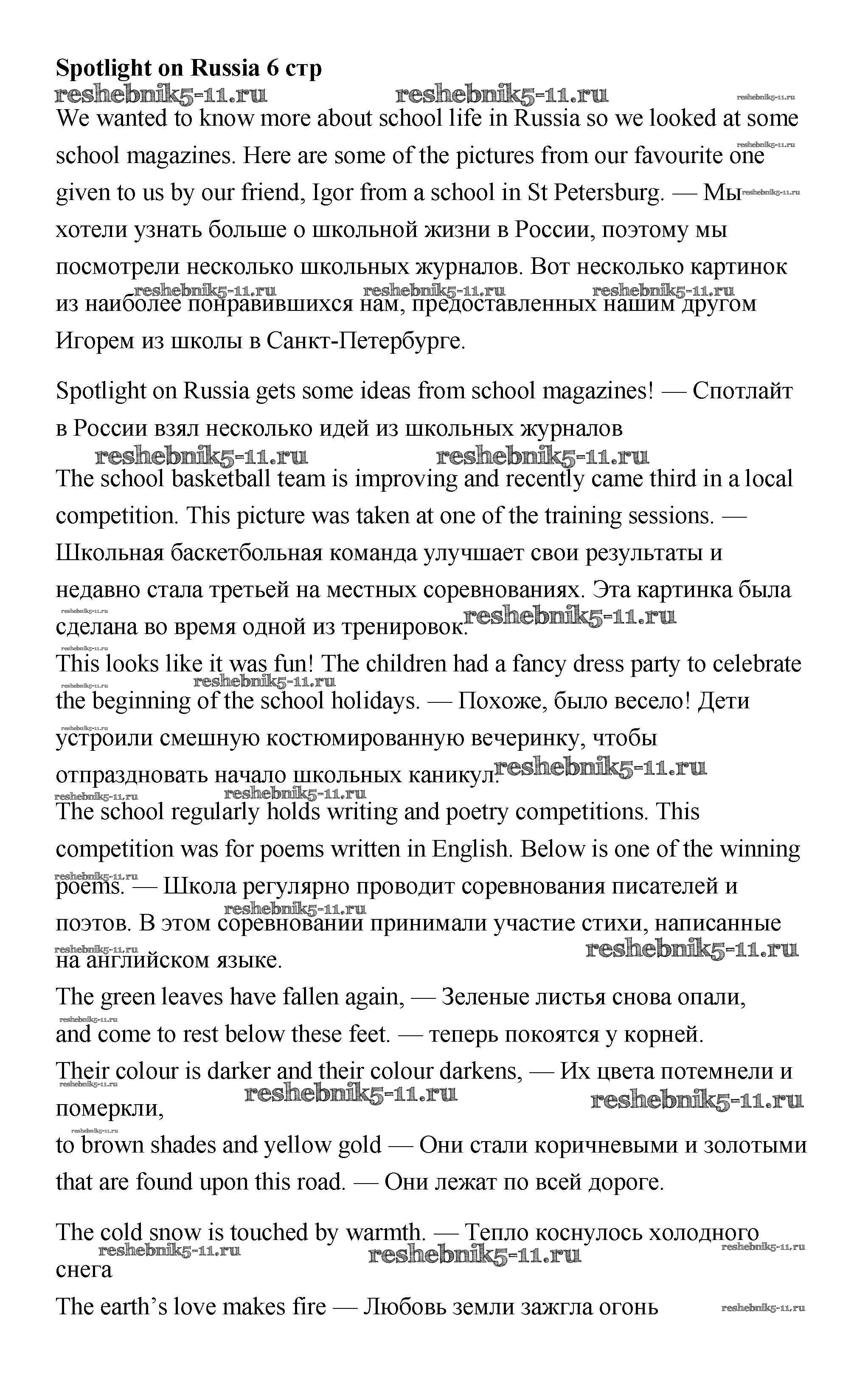 Готовая домашняя работа с ответами по Английскому языку за 7 класс Ваулина, Дули, Эванс, Подоляко Учебник Spotlight Просвещение 2019 ФГОС - Spotlight on Russia 6