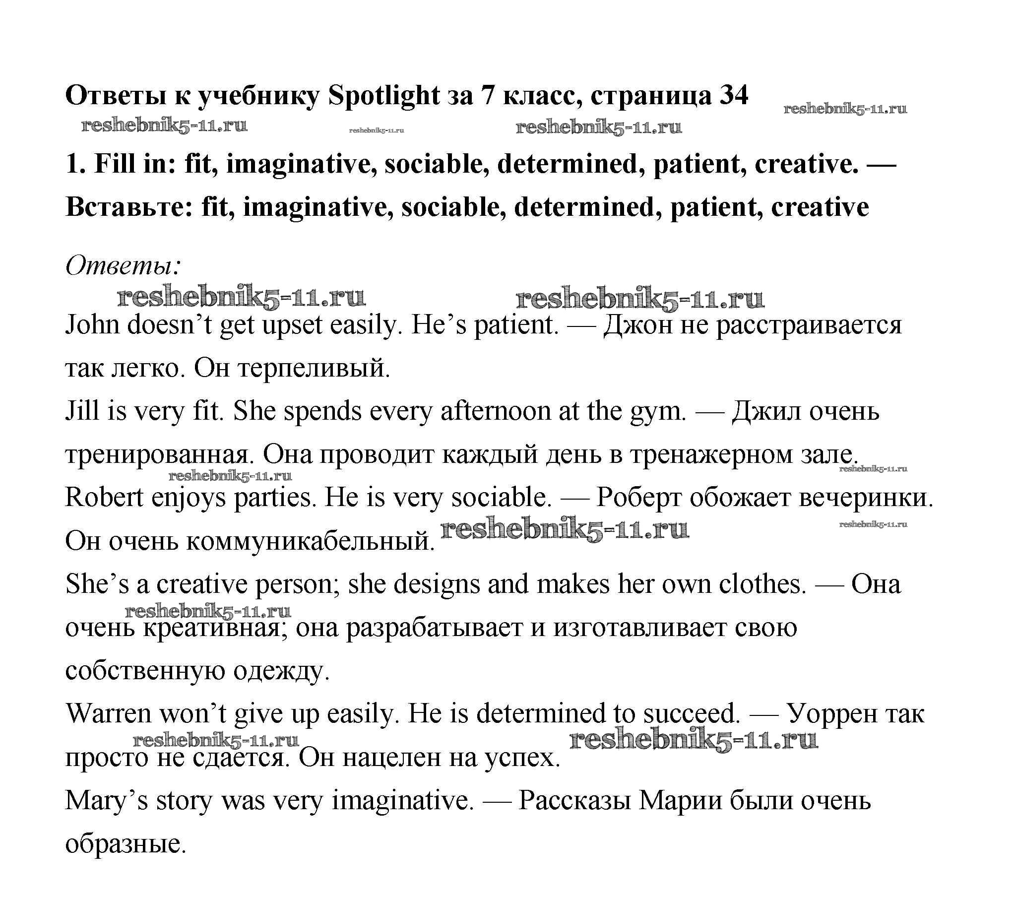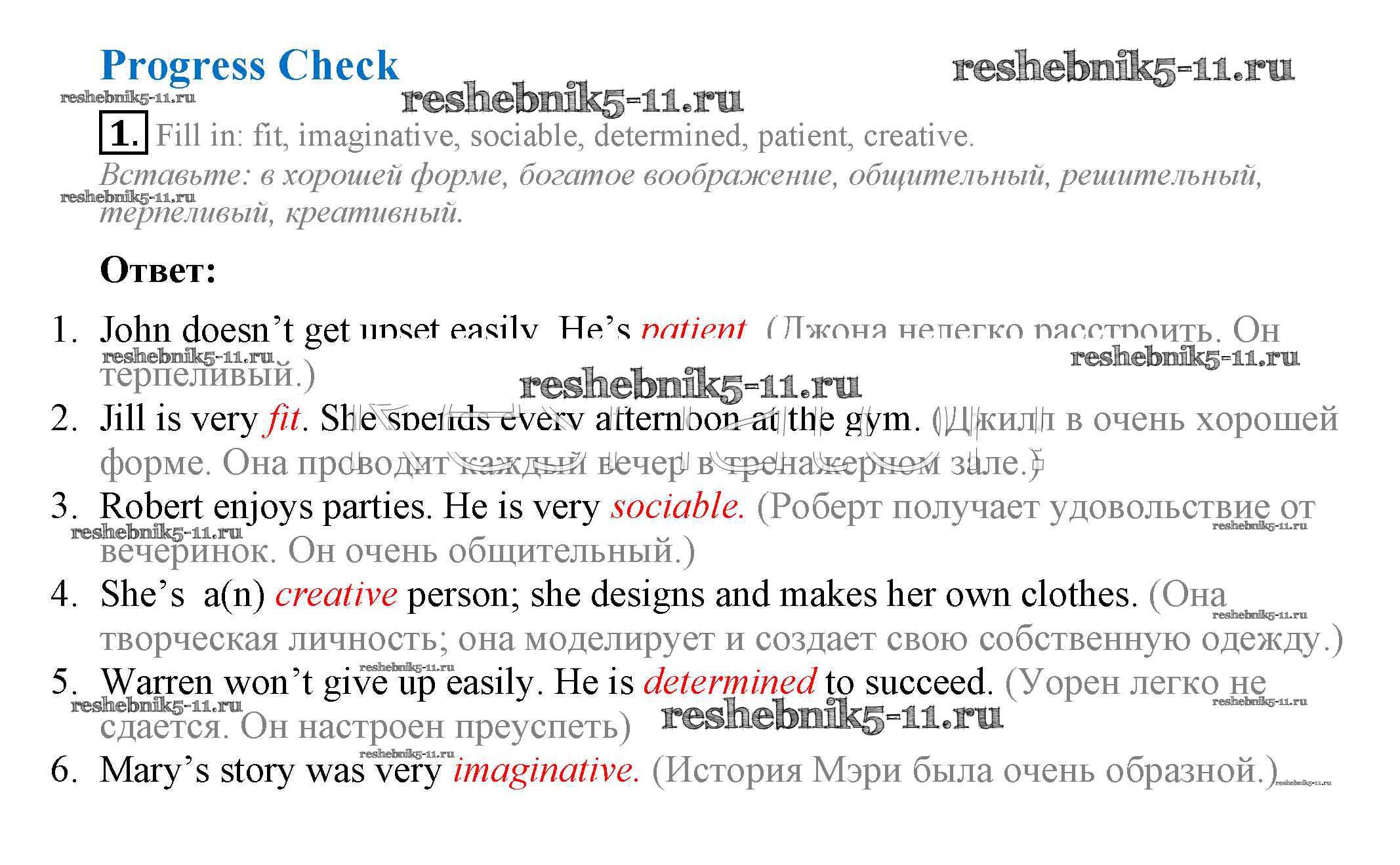 Готовая домашняя работа с ответами по Английскому языку за 7 класс Ваулина, Дули, Эванс, Подоляко Учебник Spotlight Просвещение 2019 ФГОС - Progress Check 1