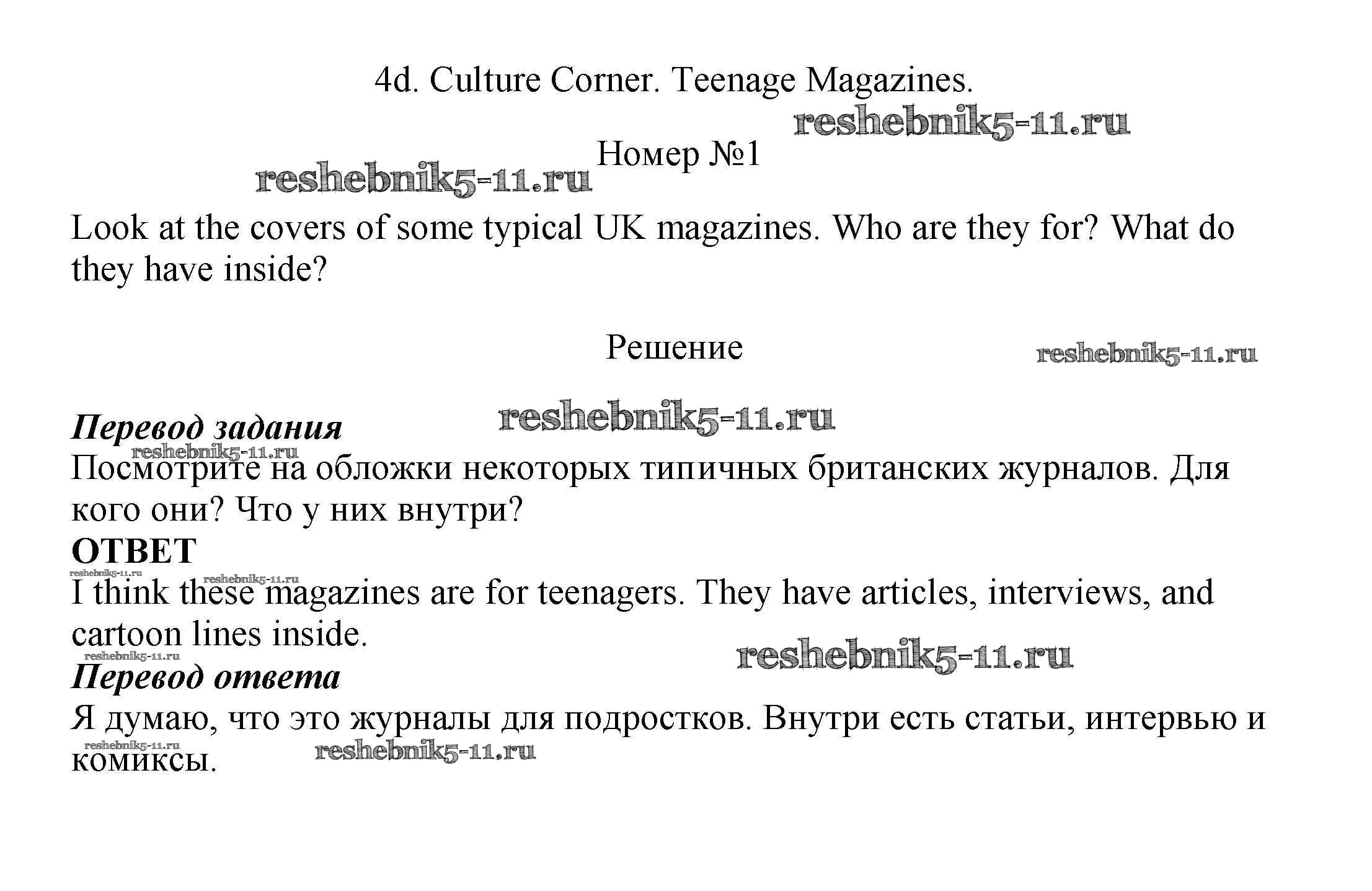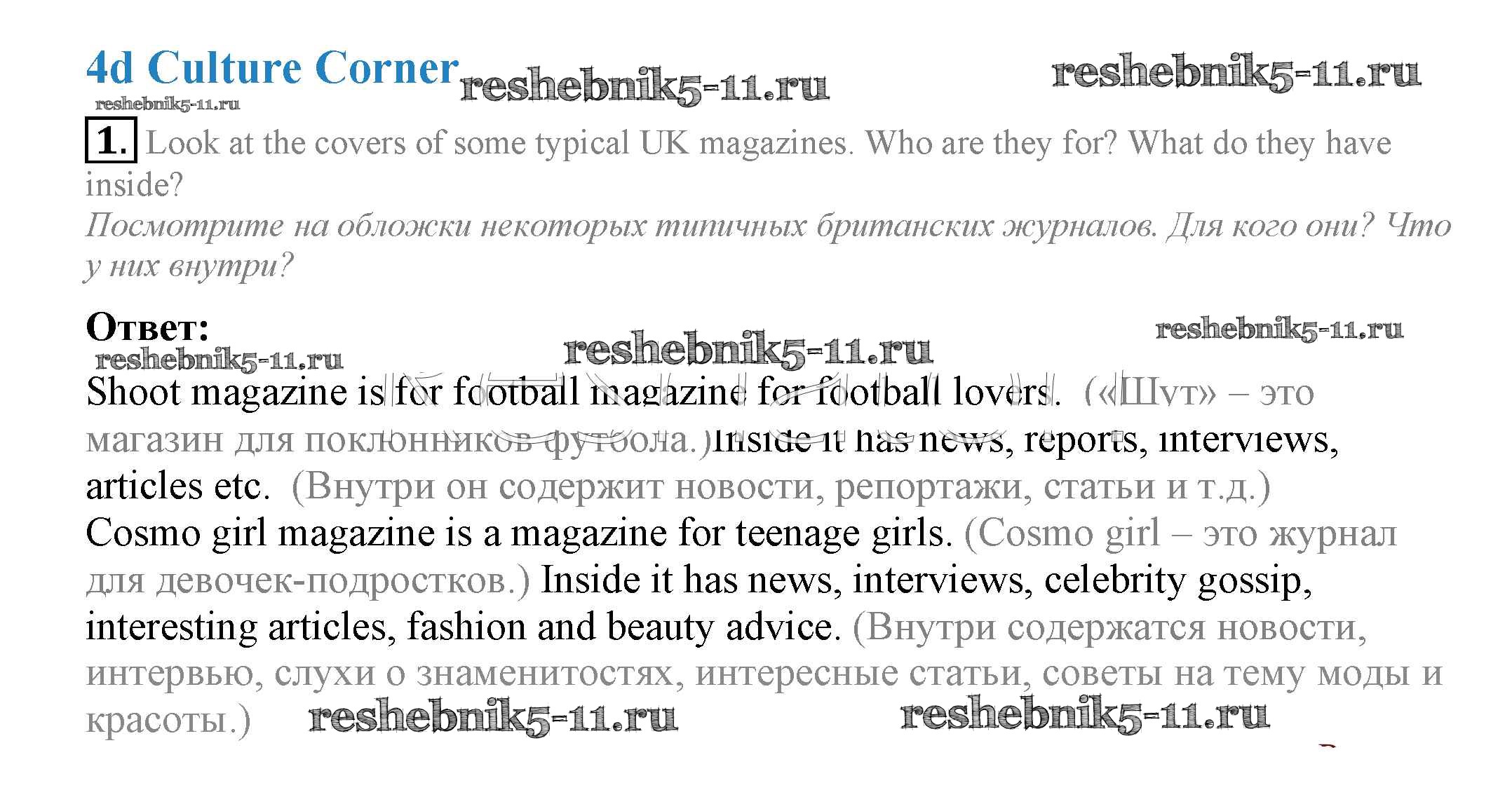 Решебник 5 / Spotlight / модуль 4 / часть 4d. Culture Corner / 1