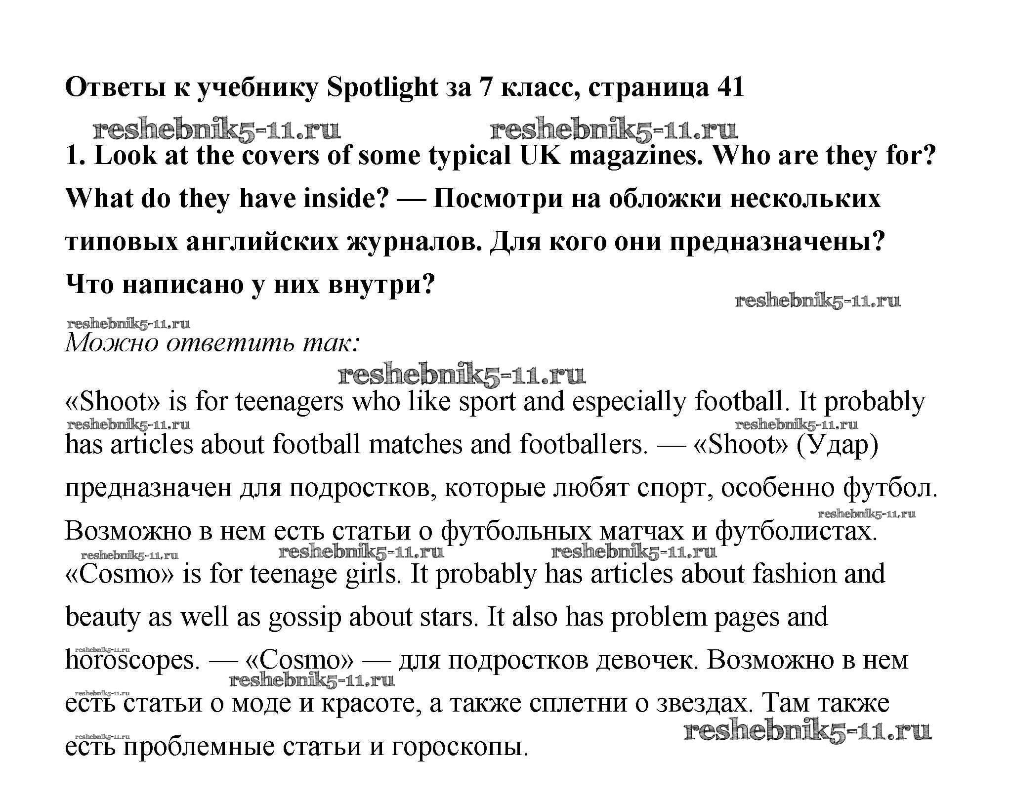Решебник 1 / Spotlight / модуль 4 / часть 4d. Culture Corner / 1