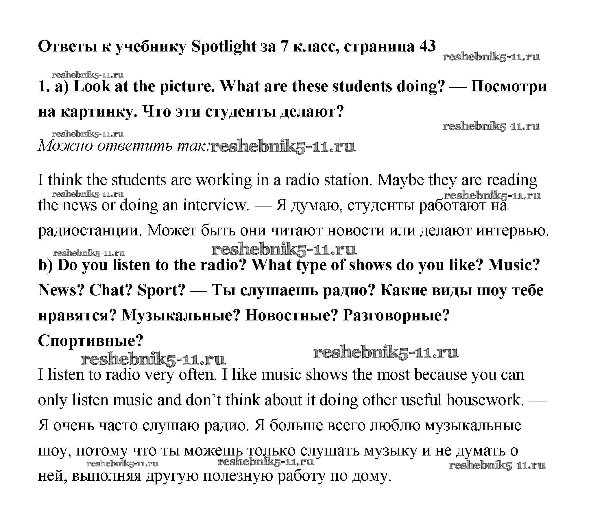 Решебник 1 / Spotlight / модуль 4 / Extensive Reading / 1