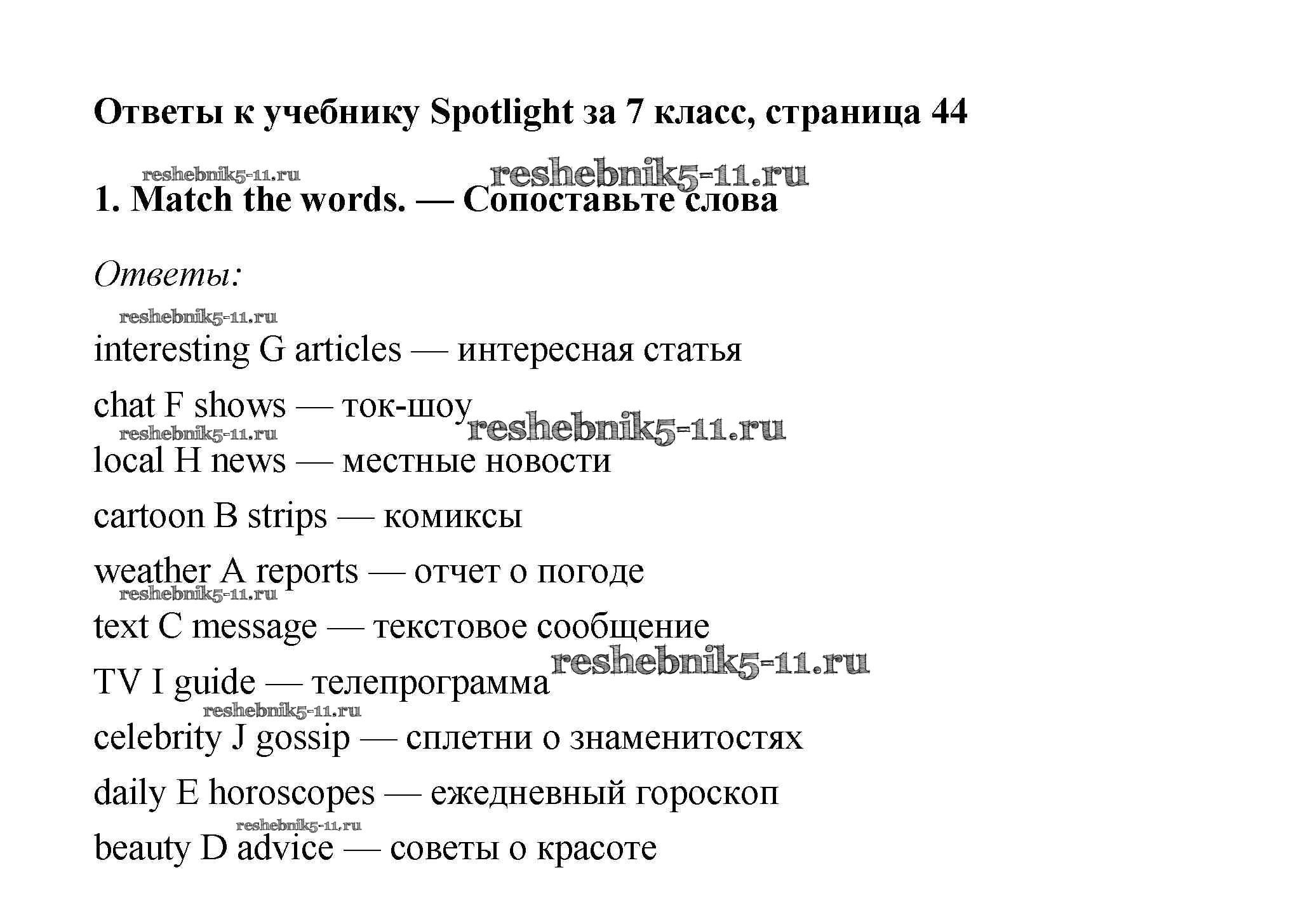 Решебник 2 / Spotlight / модуль 4 / Progress Check / 1