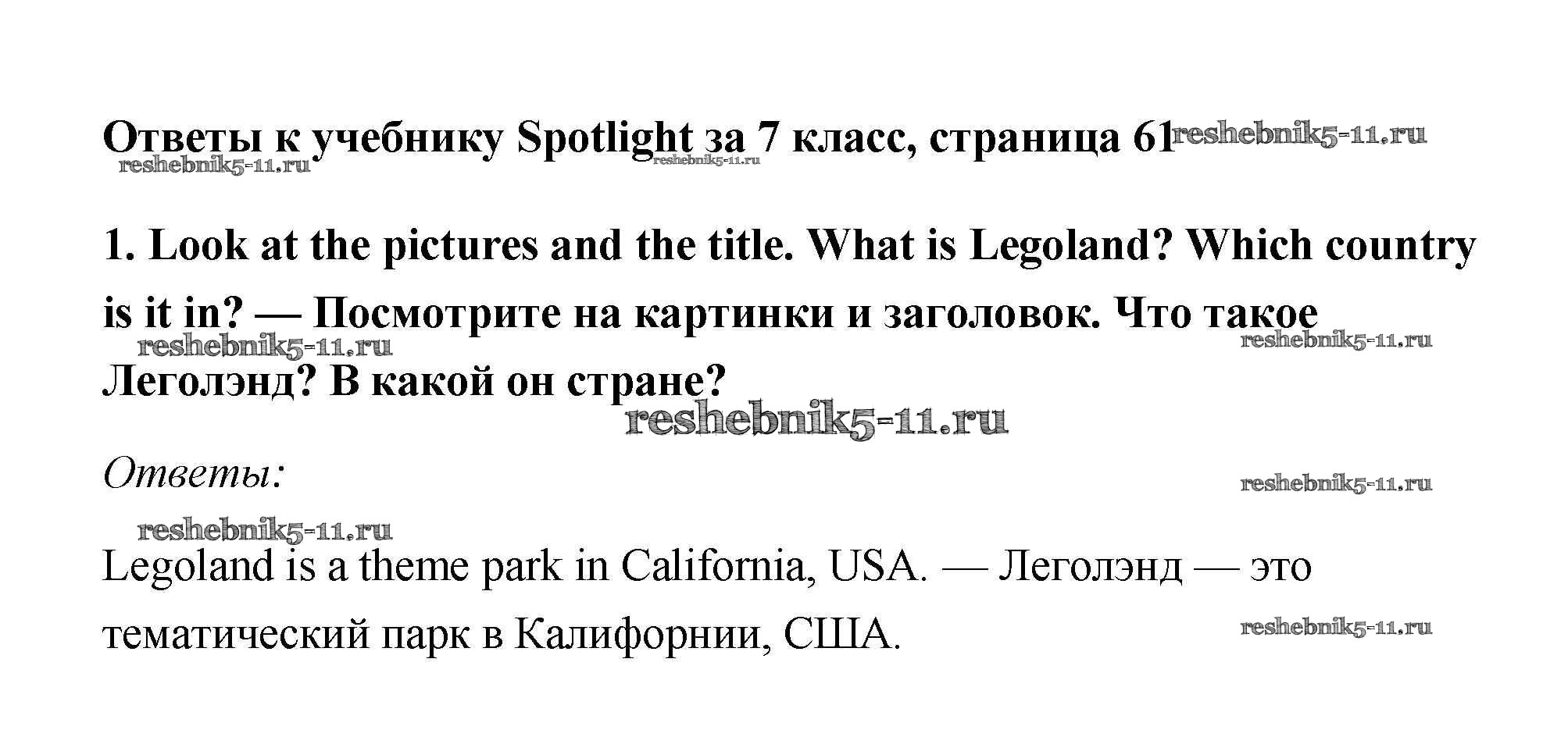Решебник 1 / Spotlight / модуль 6 / часть 6d. Culture Corner / 1