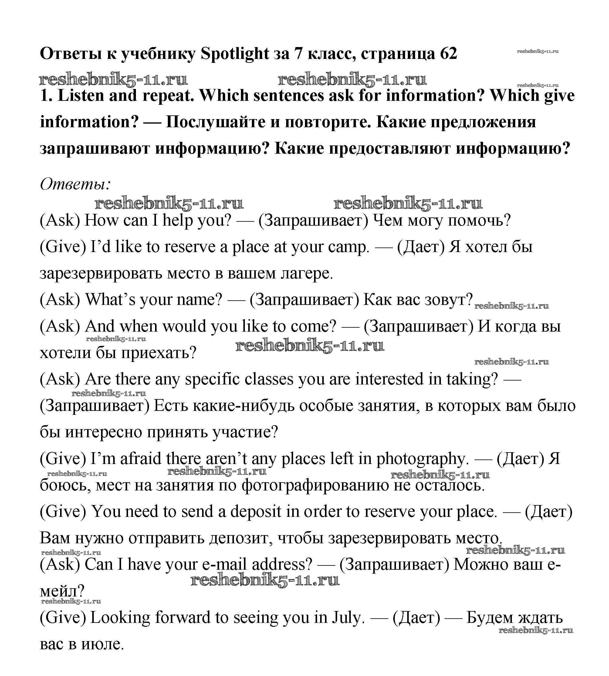 Решебник 1 / Spotlight / модуль 6 / English in use / 1