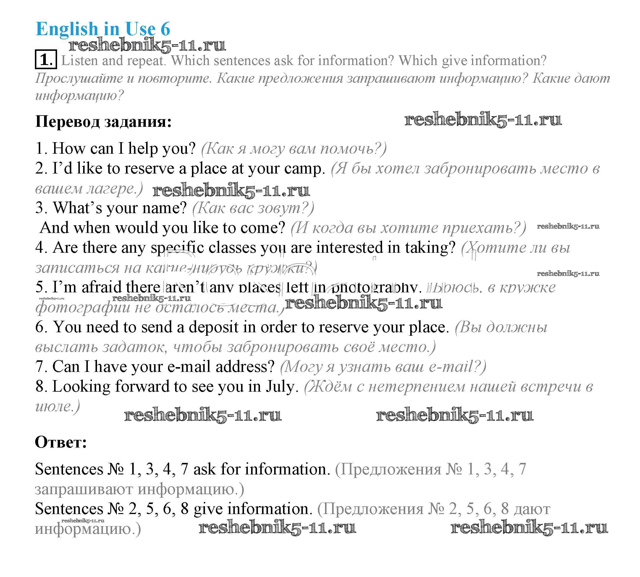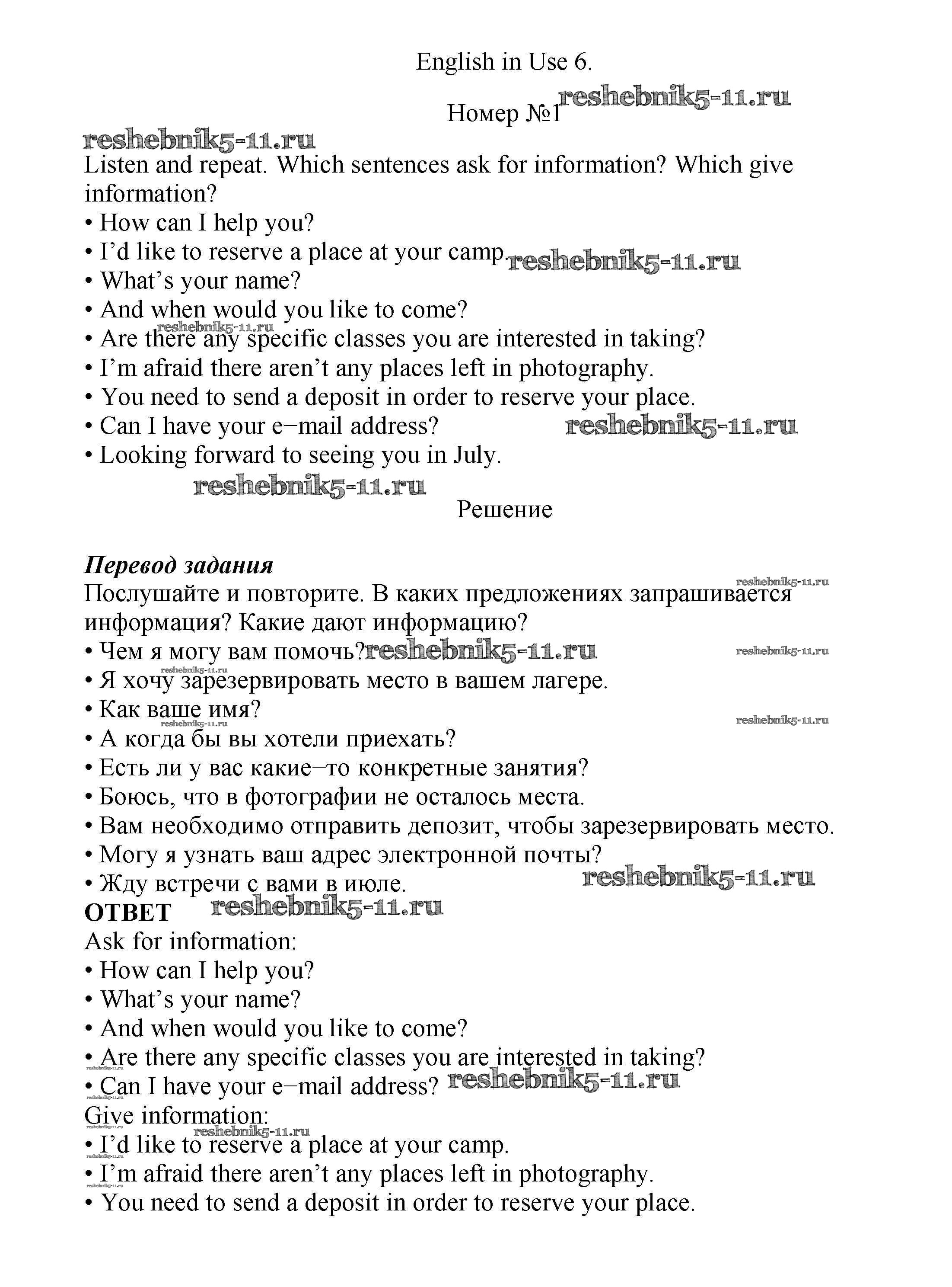Решебник 5 / Spotlight / модуль 6 / English in use / 1