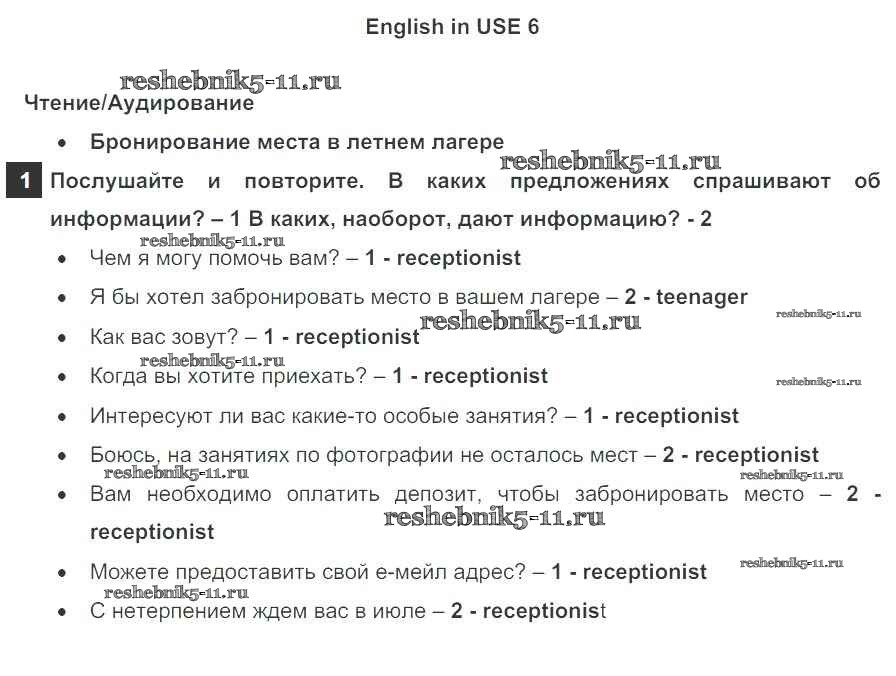 Решебник 1 / Spotlight / модуль 6 / English in use / 2