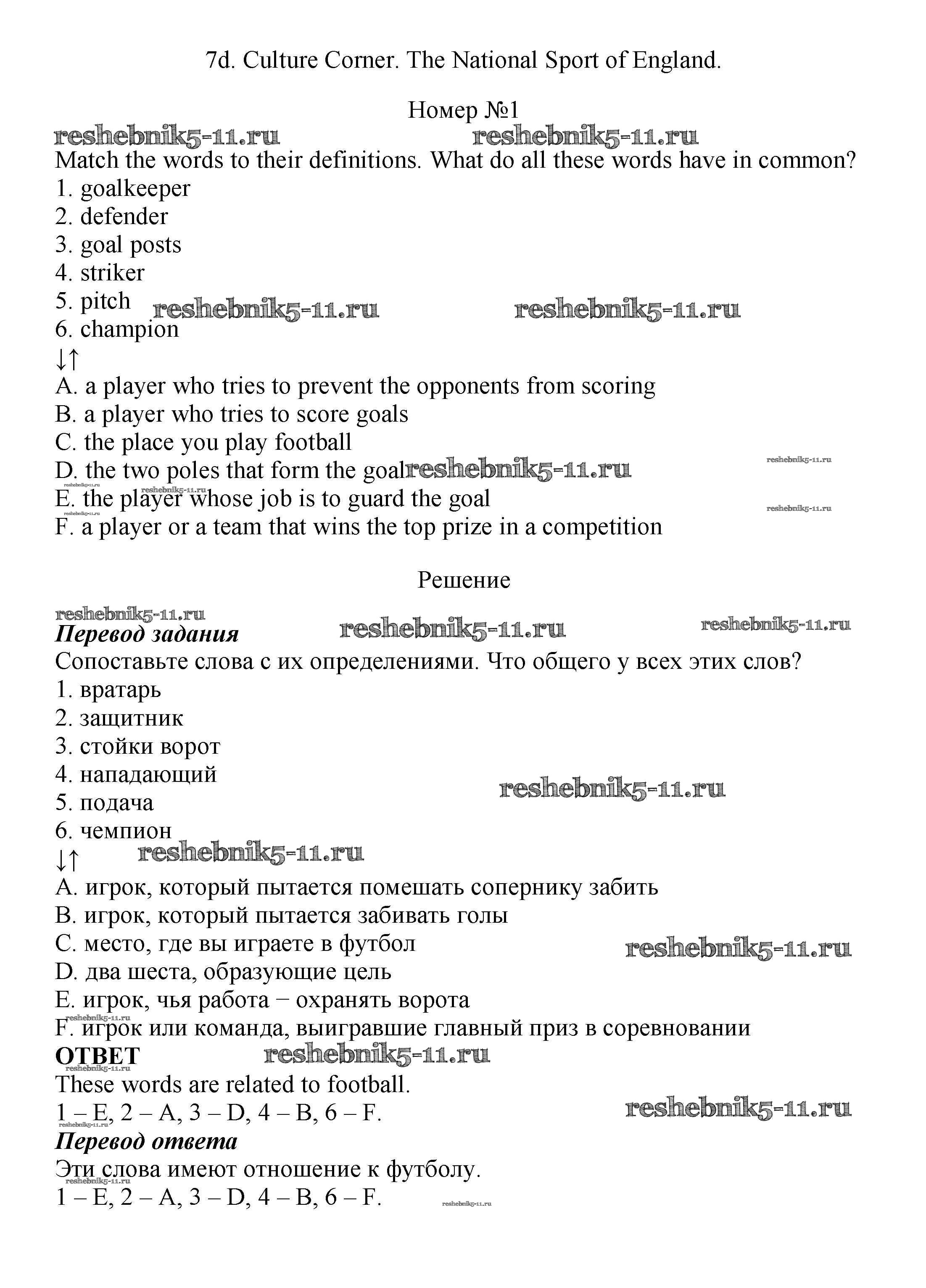 Решебник 6 / Spotlight / модуль 7 / часть 7d. Culture Corner / 1
