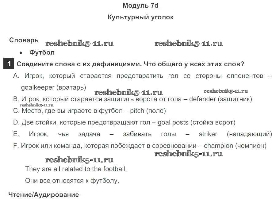 Готовая домашняя работа с ответами по Английскому языку за 7 класс Ваулина, Дули, Эванс, Подоляко Учебник Spotlight Просвещение 2019 ФГОС - Часть 7d. Culture Corner 2