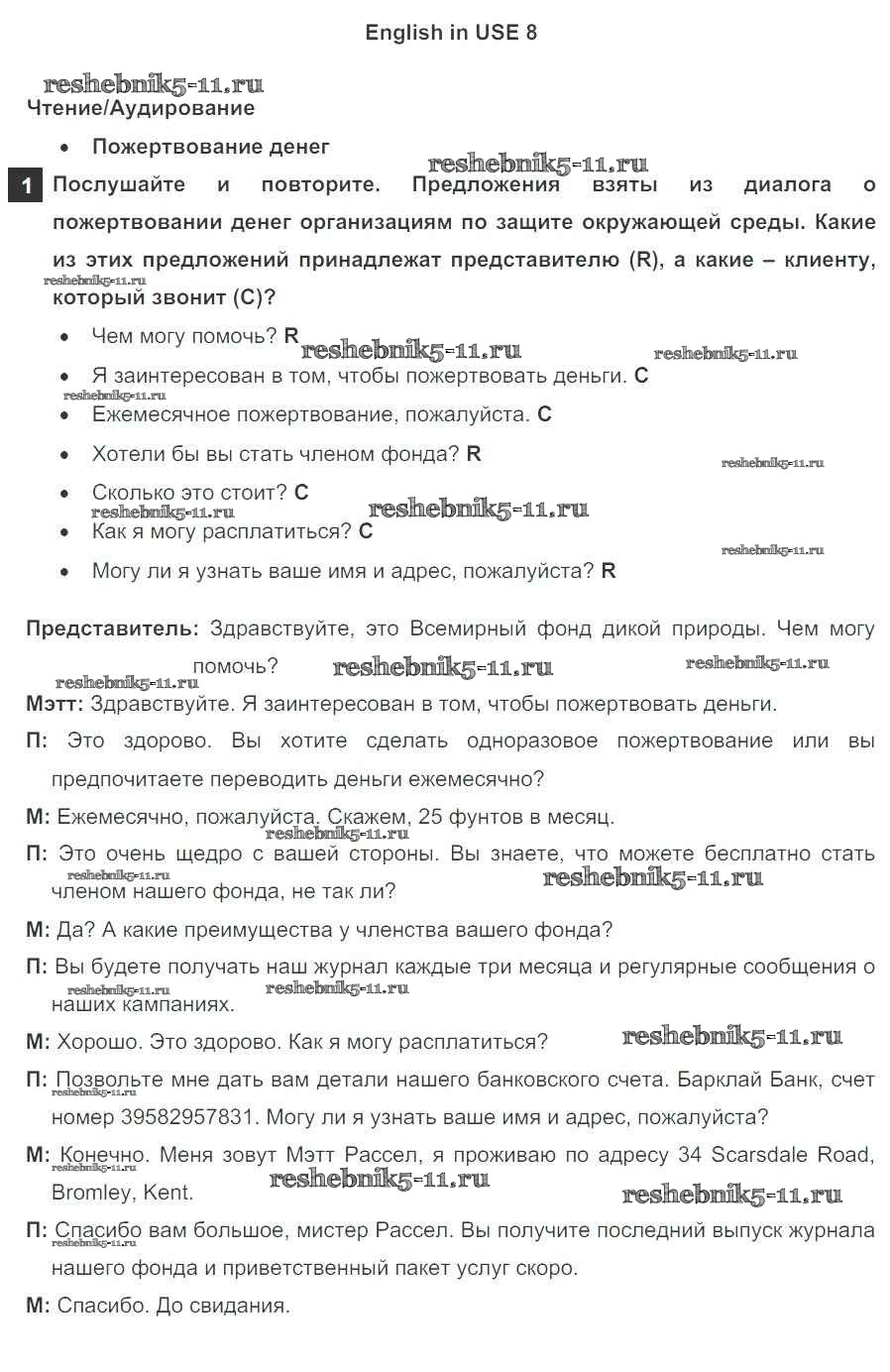 Решебник 1 / Spotlight / модуль 8 / English in use / 2