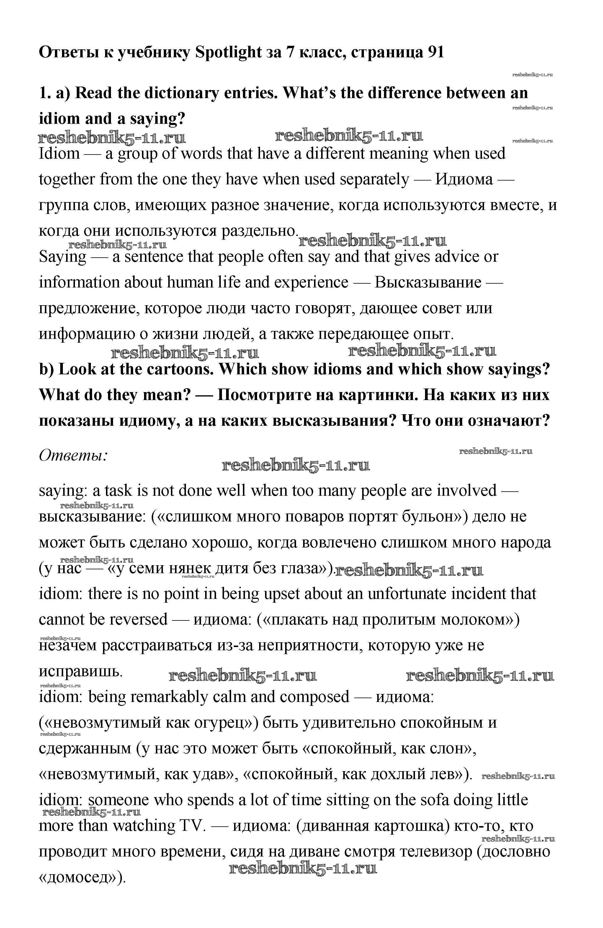 Готовая домашняя работа с ответами по Английскому языку за 7 класс Ваулина, Дули, Эванс, Подоляко Учебник Spotlight Просвещение 2019 ФГОС - Часть 9d. Culture Corner 1