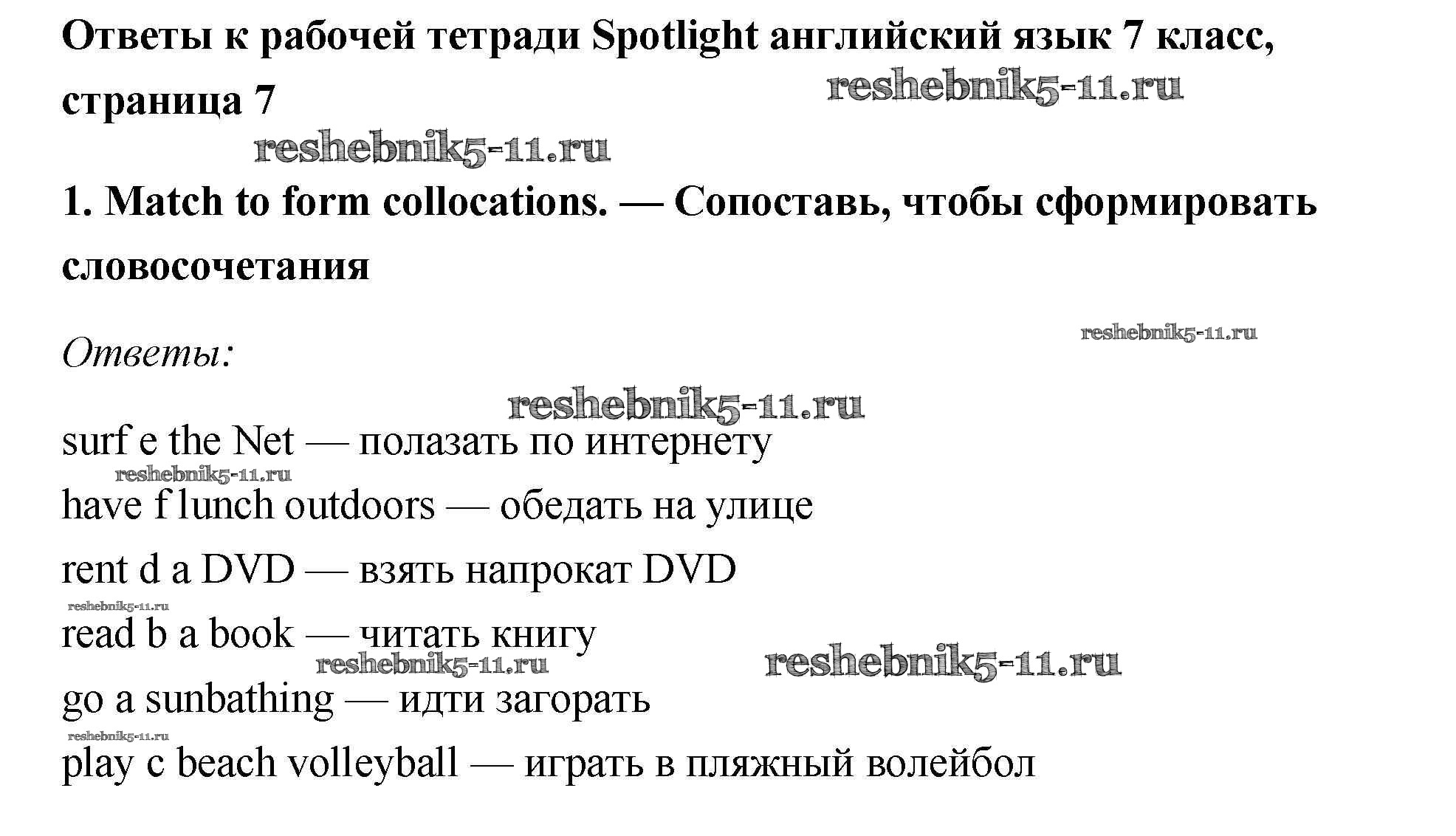Готовая домашняя работа с ответами по Английскому языку за 7 класс Ваулина, Подоляко, Эванс, Дули Рабочая тетрадь Spotlight Просвещение 2015 ФГОС - Часть 1c 1