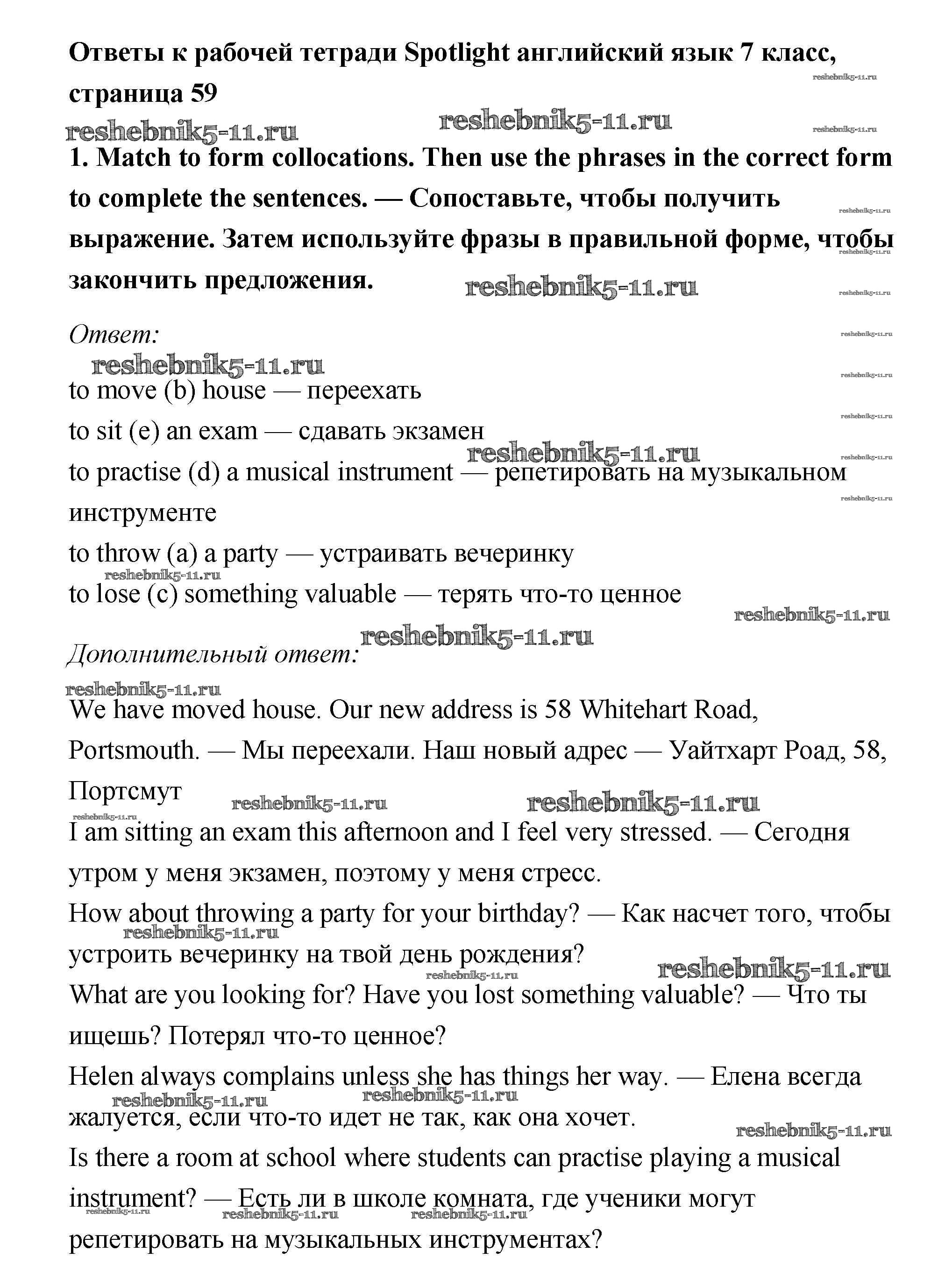 Готовая домашняя работа с ответами по Английскому языку за 7 класс Ваулина, Подоляко, Эванс, Дули Рабочая тетрадь Spotlight Просвещение 2015 ФГОС - Часть 10a 1