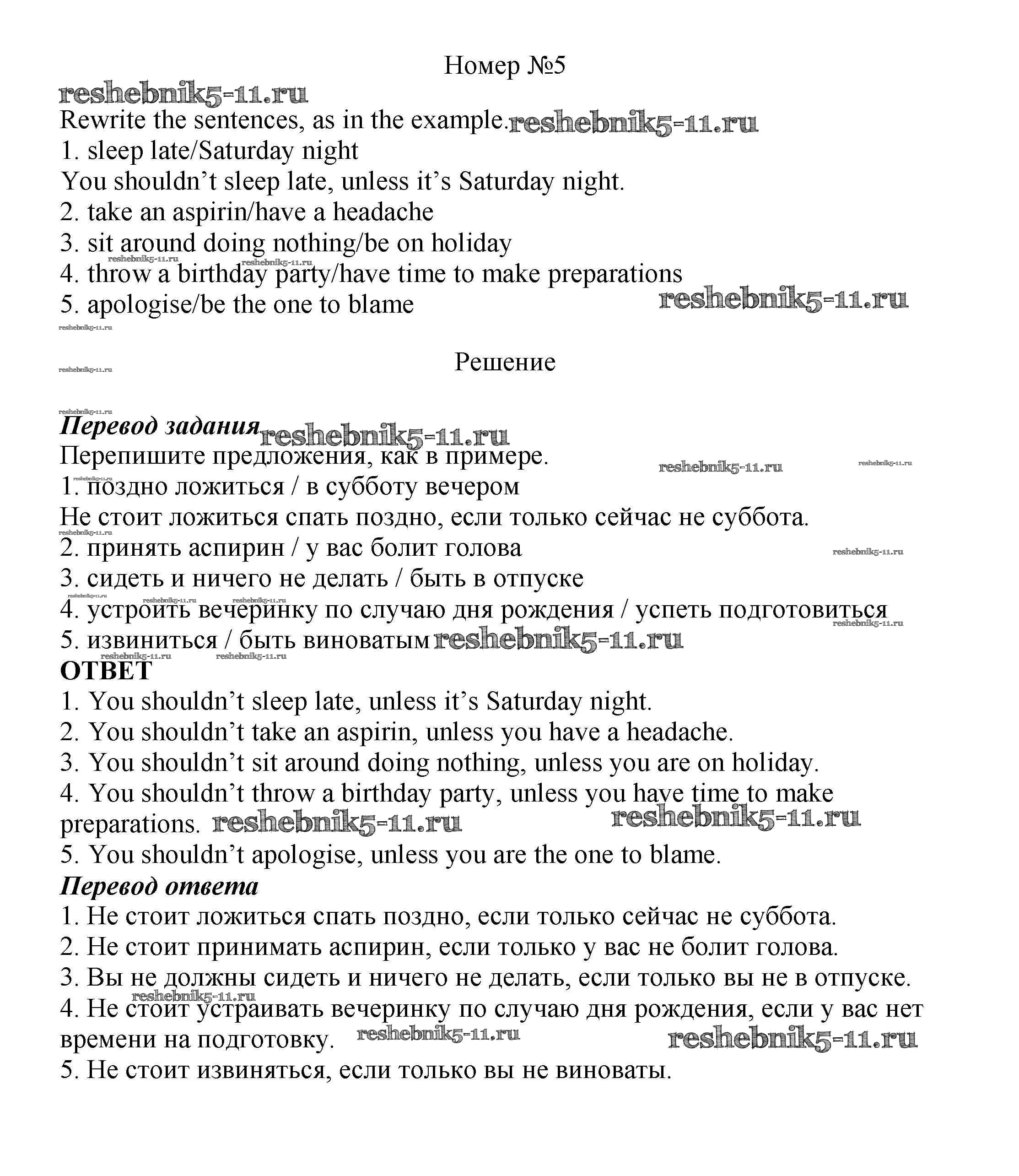 Готовая домашняя работа с ответами по Английскому языку за 7 класс Ваулина, Подоляко, Эванс, Дули Рабочая тетрадь Spotlight Просвещение 2015 ФГОС - Часть 10a 5