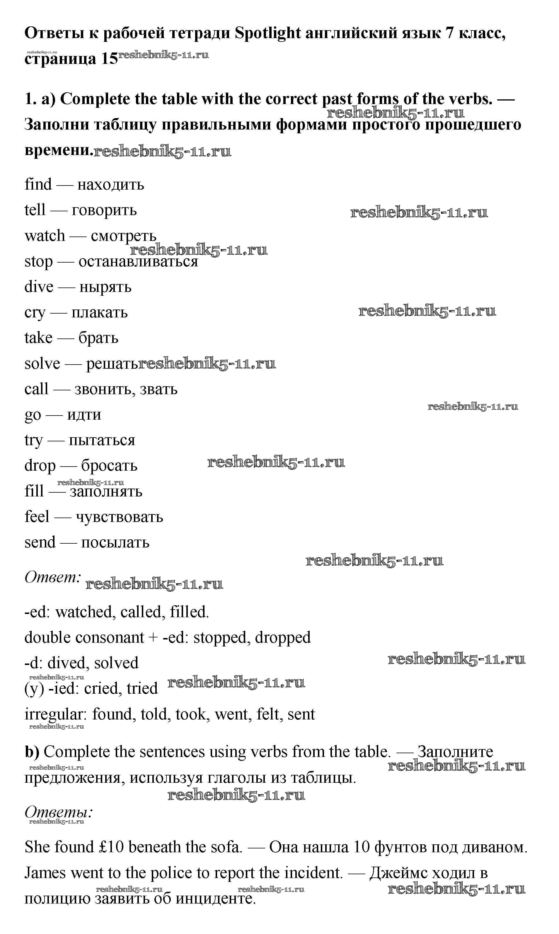 Готовая домашняя работа с ответами по Английскому языку за 7 класс Ваулина, Подоляко, Эванс, Дули Рабочая тетрадь Spotlight Просвещение 2015 ФГОС - Grammar Practice 1