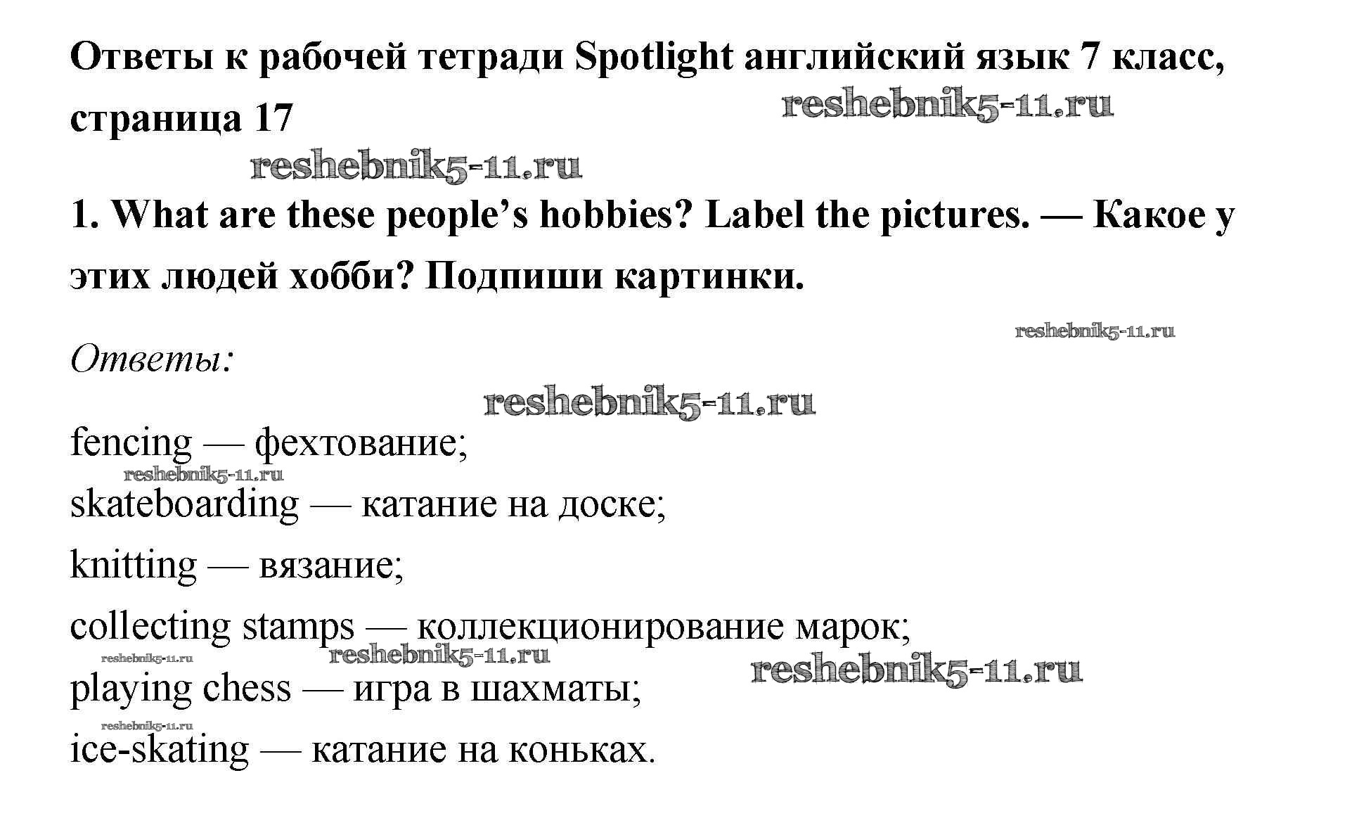 Готовая домашняя работа с ответами по Английскому языку за 7 класс Ваулина, Подоляко, Эванс, Дули Рабочая тетрадь Spotlight Просвещение 2015 ФГОС - Часть 3a 1