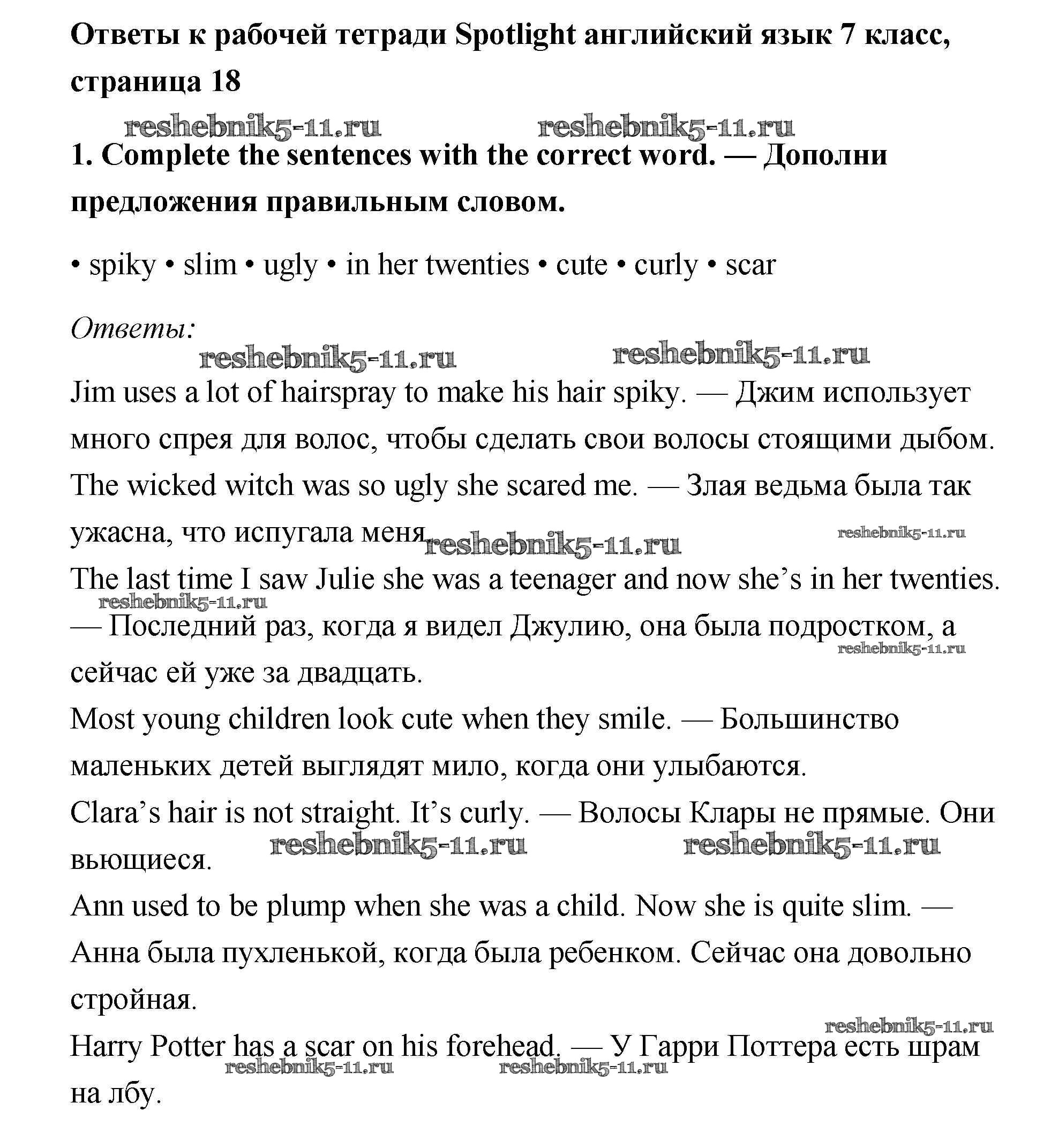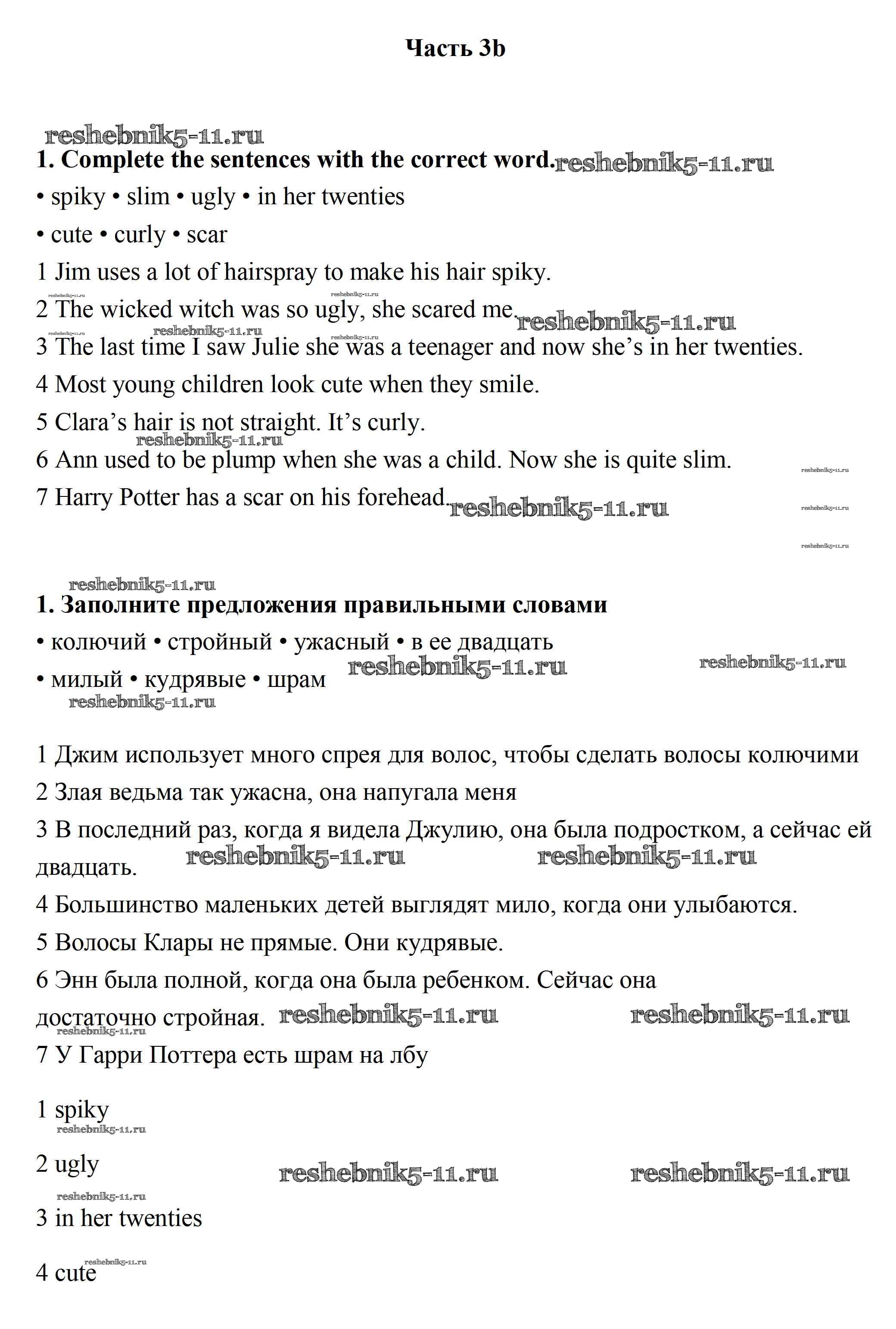 Готовая домашняя работа с ответами по Английскому языку за 7 класс Ваулина, Подоляко, Эванс, Дули Рабочая тетрадь Spotlight Просвещение 2015 ФГОС - Часть 3b 1