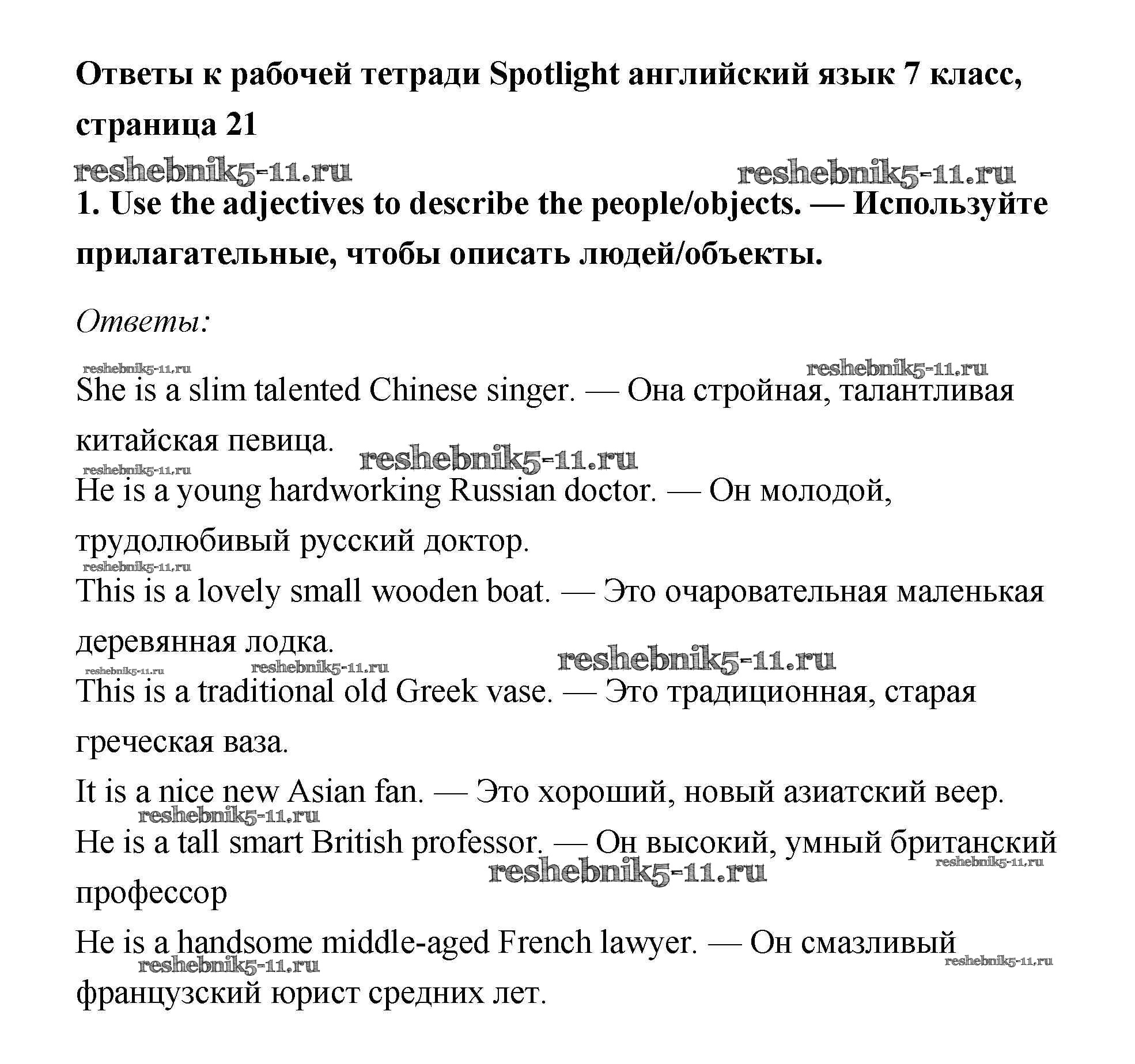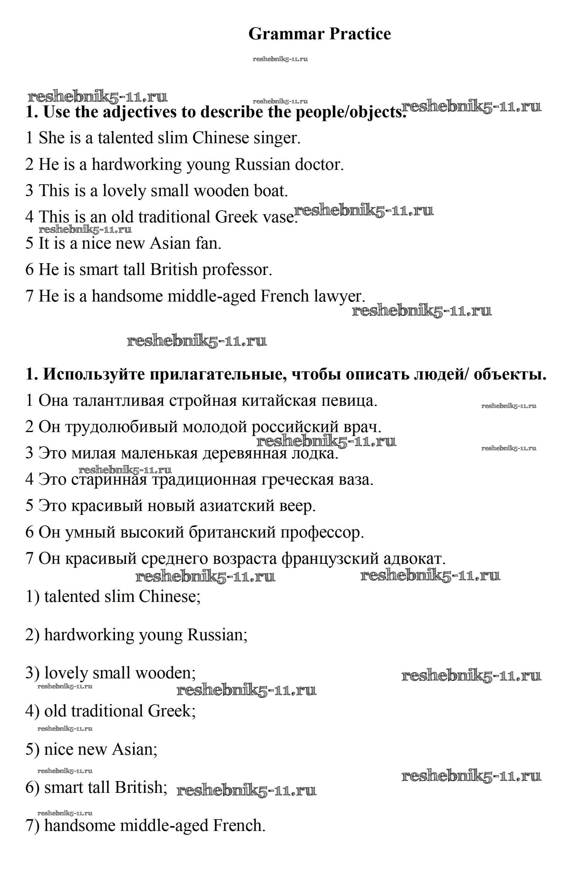 Готовая домашняя работа с ответами по Английскому языку за 7 класс Ваулина, Подоляко, Эванс, Дули Рабочая тетрадь Spotlight Просвещение 2015 ФГОС - Grammar Practice 1