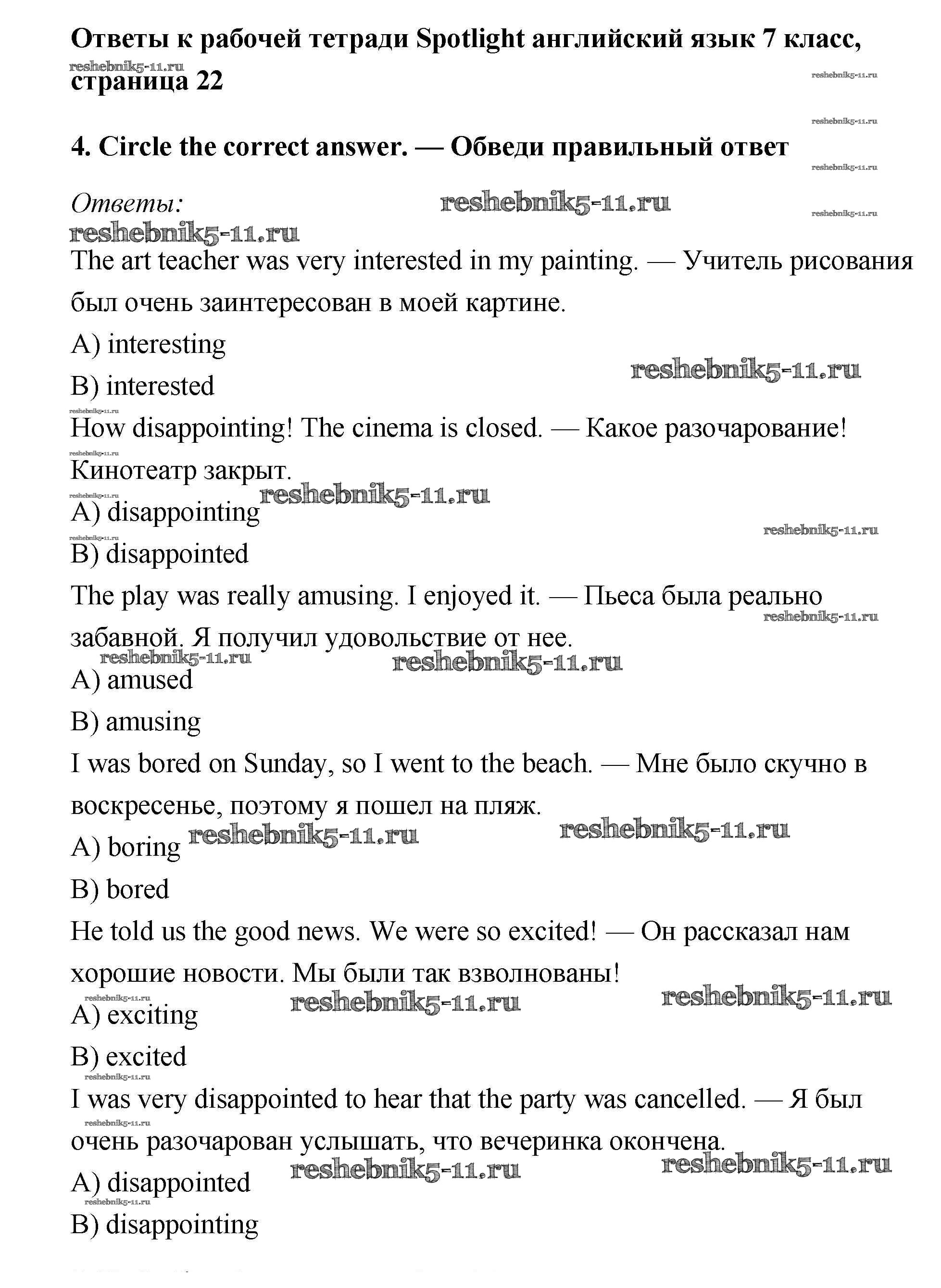 Готовая домашняя работа с ответами по Английскому языку за 7 класс Ваулина, Подоляко, Эванс, Дули Рабочая тетрадь Spotlight Просвещение 2015 ФГОС - Grammar Practice 4