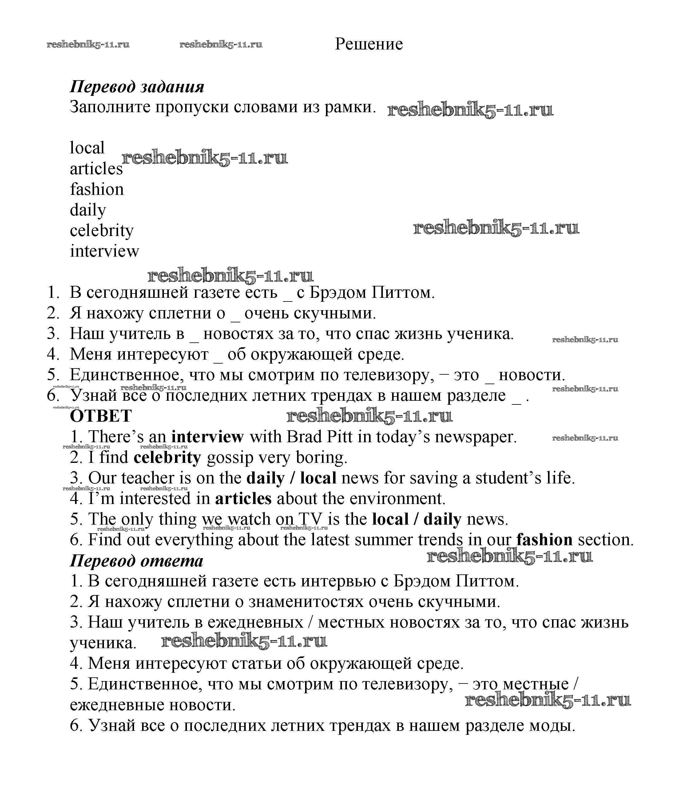 Готовая домашняя работа с ответами по Английскому языку за 7 класс Ваулина, Подоляко, Эванс, Дули Рабочая тетрадь Spotlight Просвещение 2015 ФГОС - Часть 4a 2