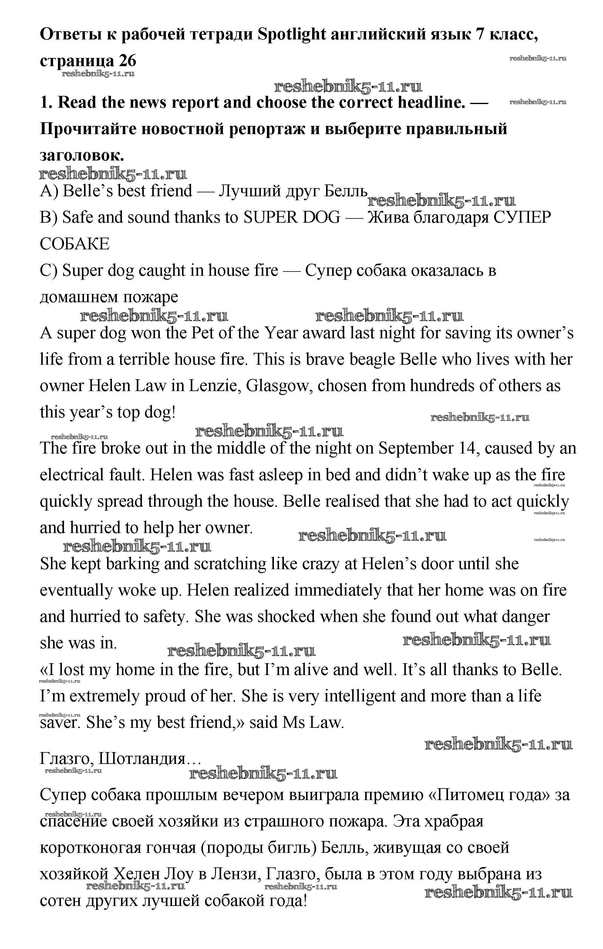 Готовая домашняя работа с ответами по Английскому языку за 7 класс Ваулина, Подоляко, Эванс, Дули Рабочая тетрадь Spotlight Просвещение 2015 ФГОС - Writing 1