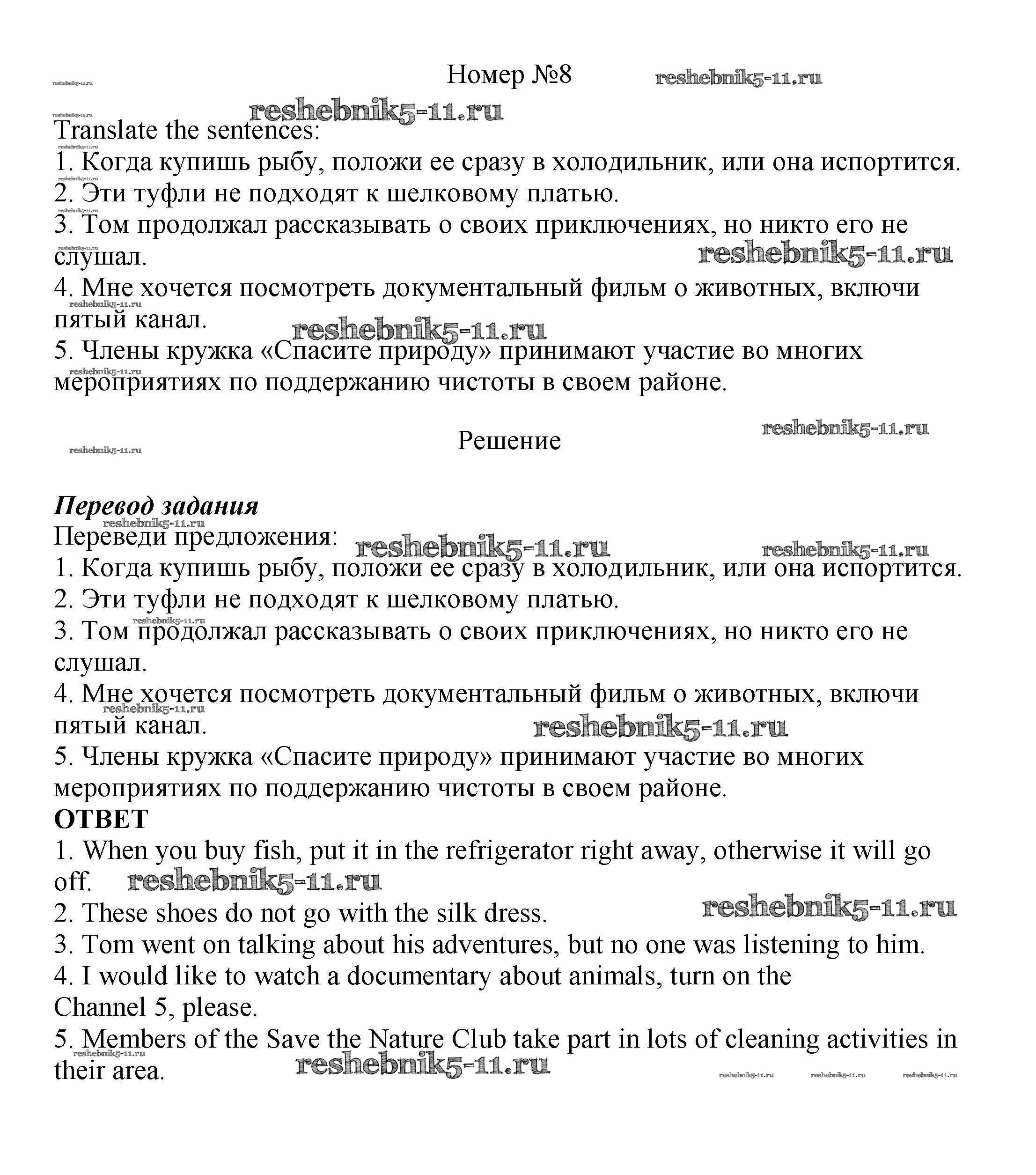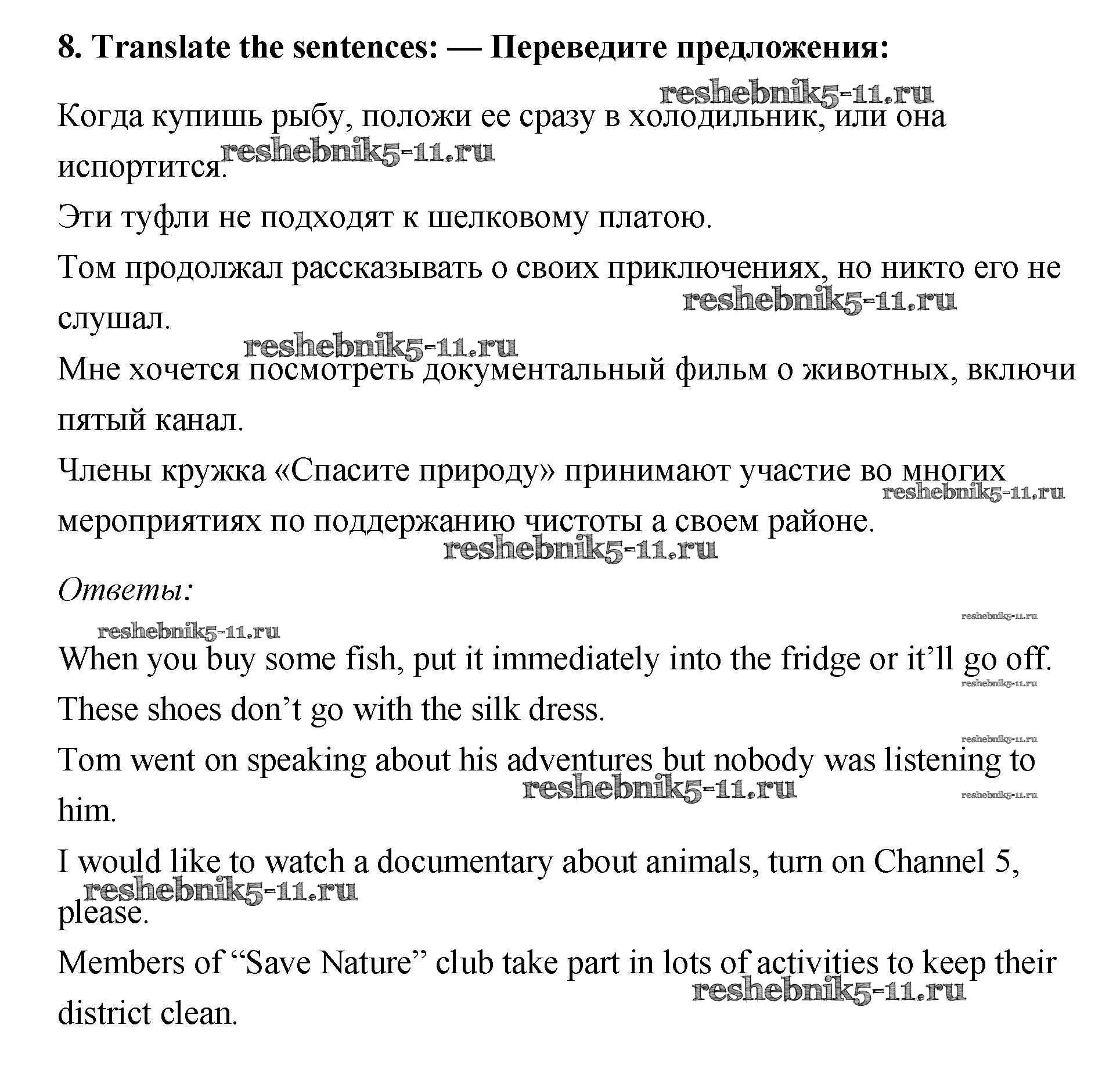 Готовая домашняя работа с ответами по Английскому языку за 7 класс Ваулина, Подоляко, Эванс, Дули Рабочая тетрадь Spotlight Просвещение 2015 ФГОС - Grammar Practice 8