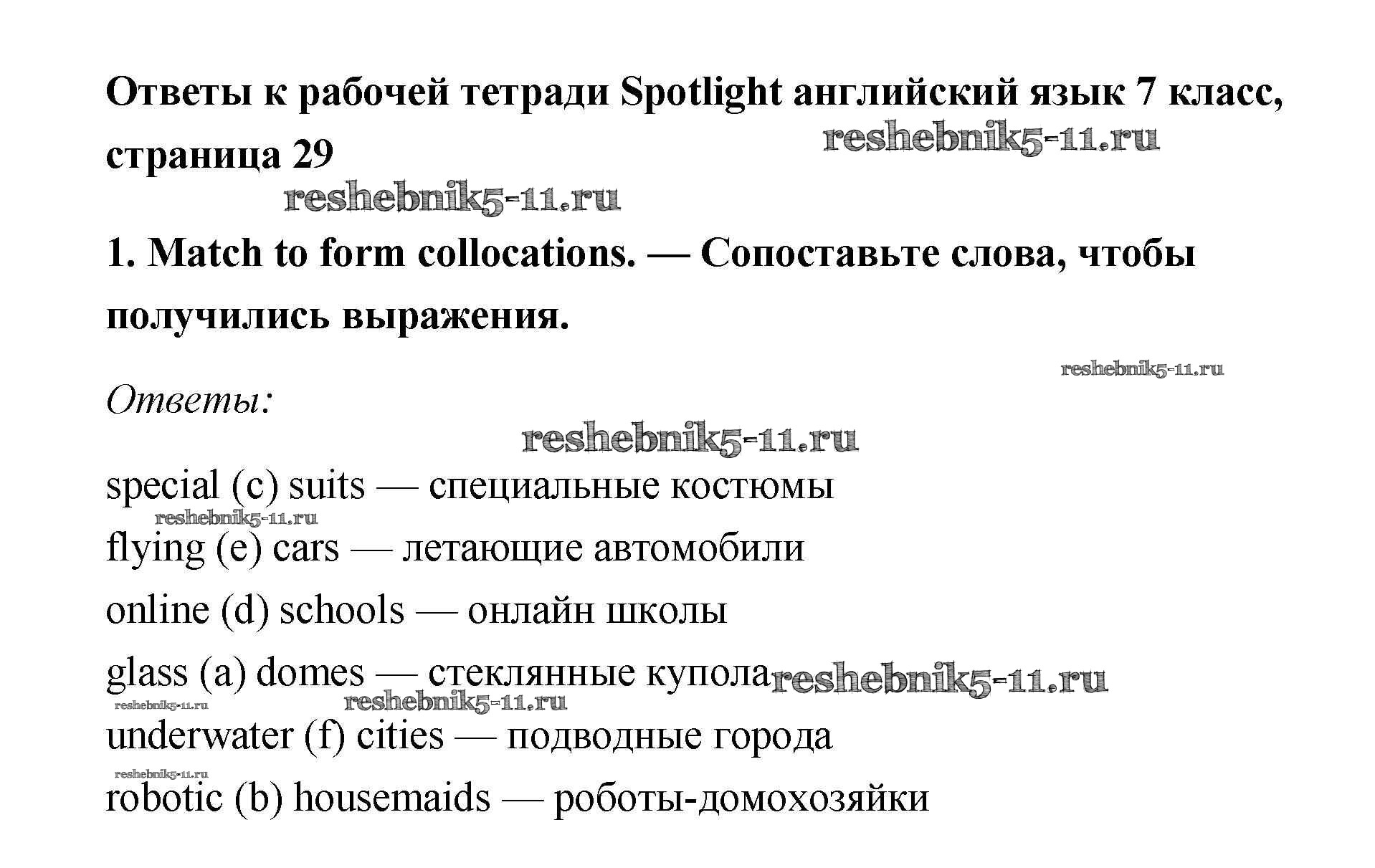 Готовая домашняя работа с ответами по Английскому языку за 7 класс Ваулина, Подоляко, Эванс, Дули Рабочая тетрадь Spotlight Просвещение 2015 ФГОС - Часть 5a 1