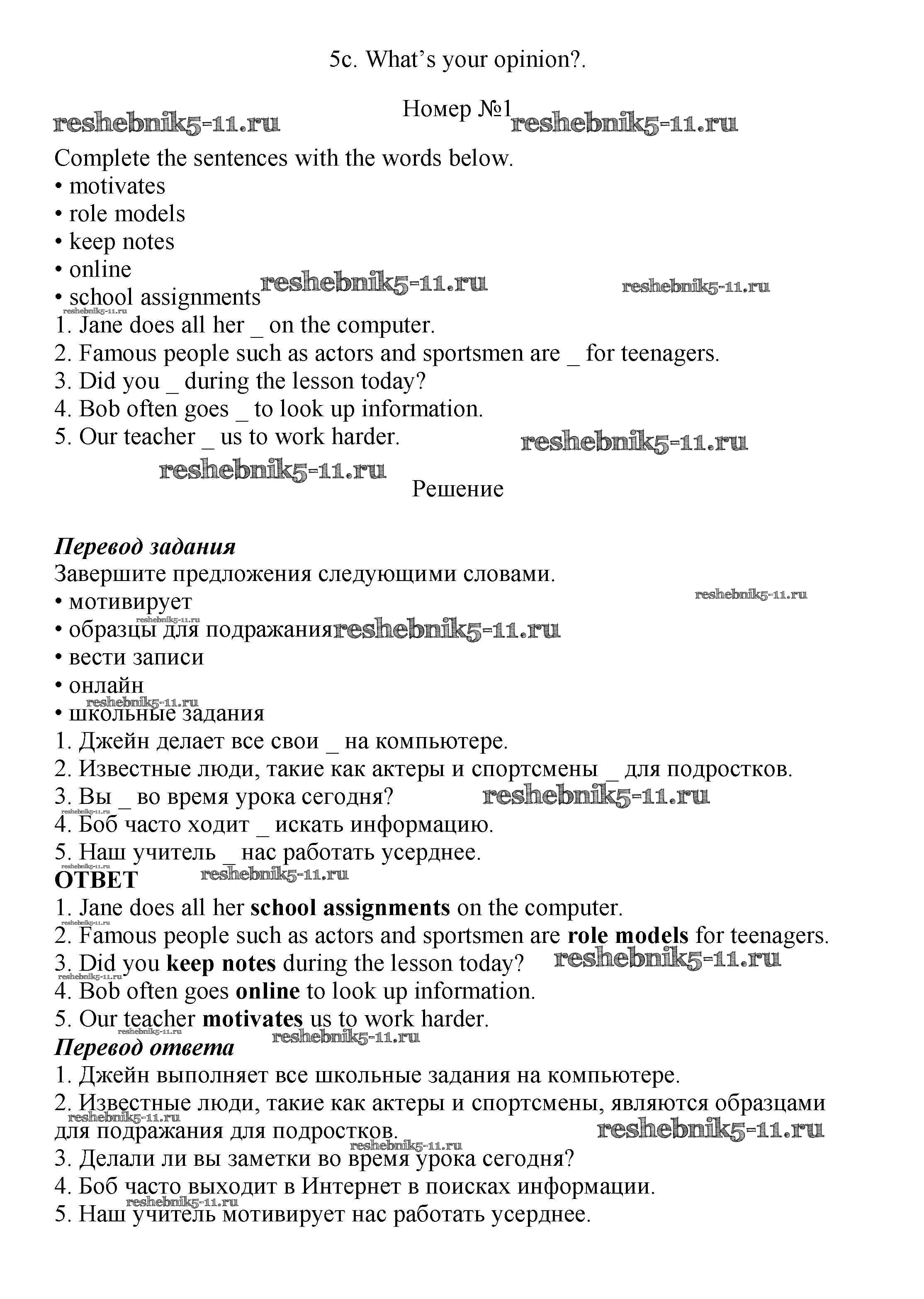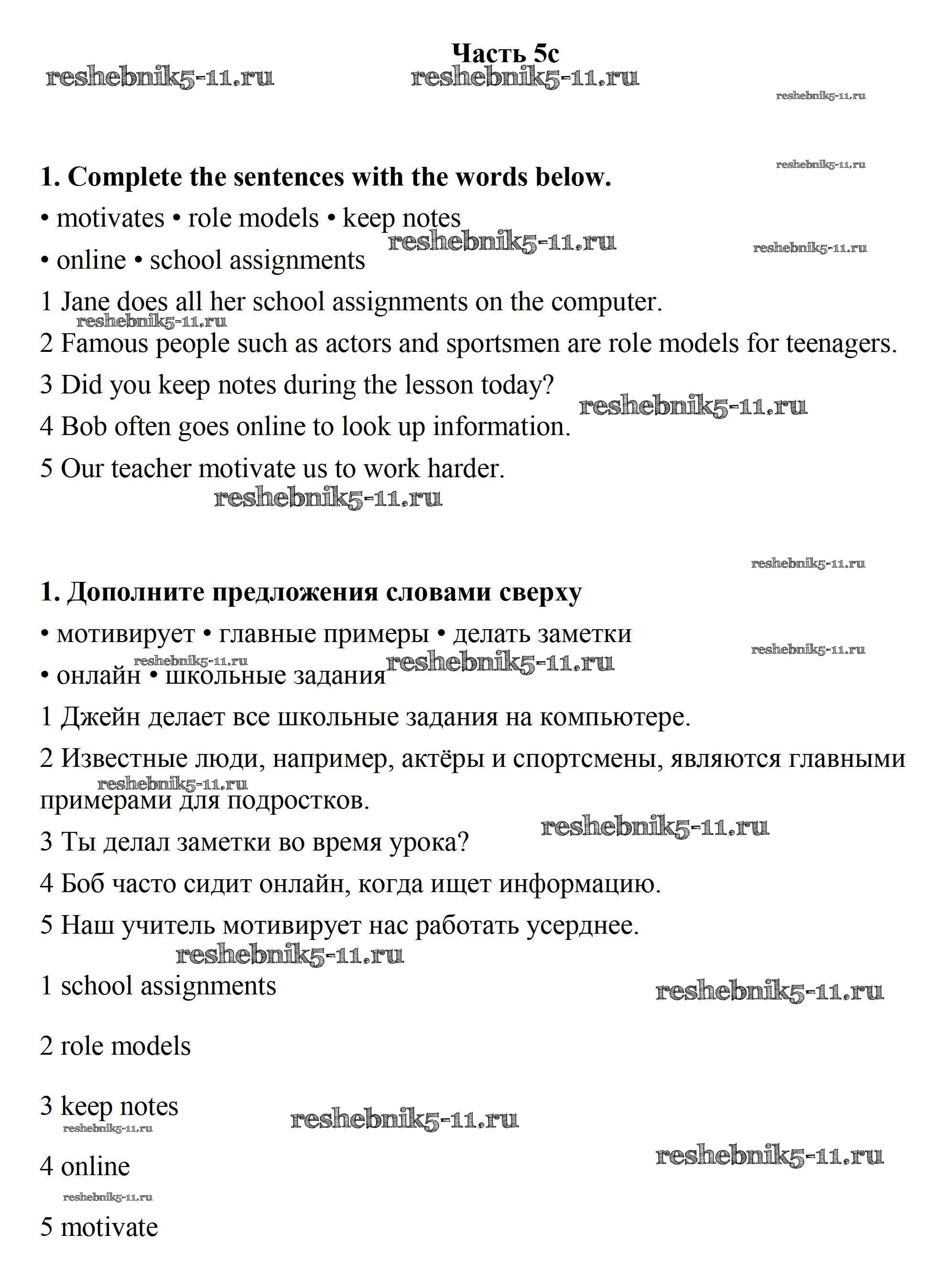 Готовая домашняя работа с ответами по Английскому языку за 7 класс Ваулина, Подоляко, Эванс, Дули Рабочая тетрадь Spotlight Просвещение 2015 ФГОС - Часть 5c 1