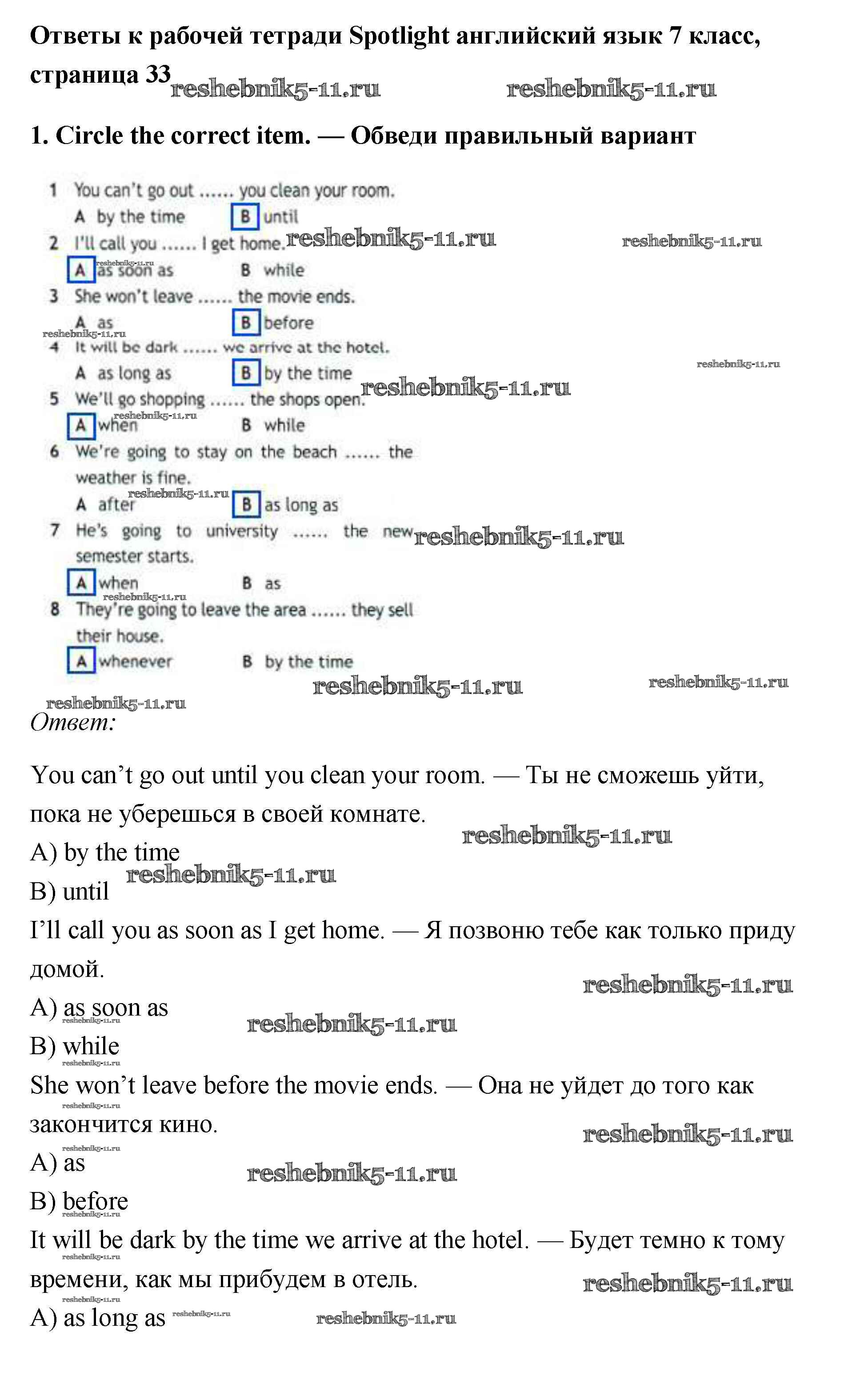 Готовая домашняя работа с ответами по Английскому языку за 7 класс Ваулина, Подоляко, Эванс, Дули Рабочая тетрадь Spotlight Просвещение 2015 ФГОС - Grammar Practice 1