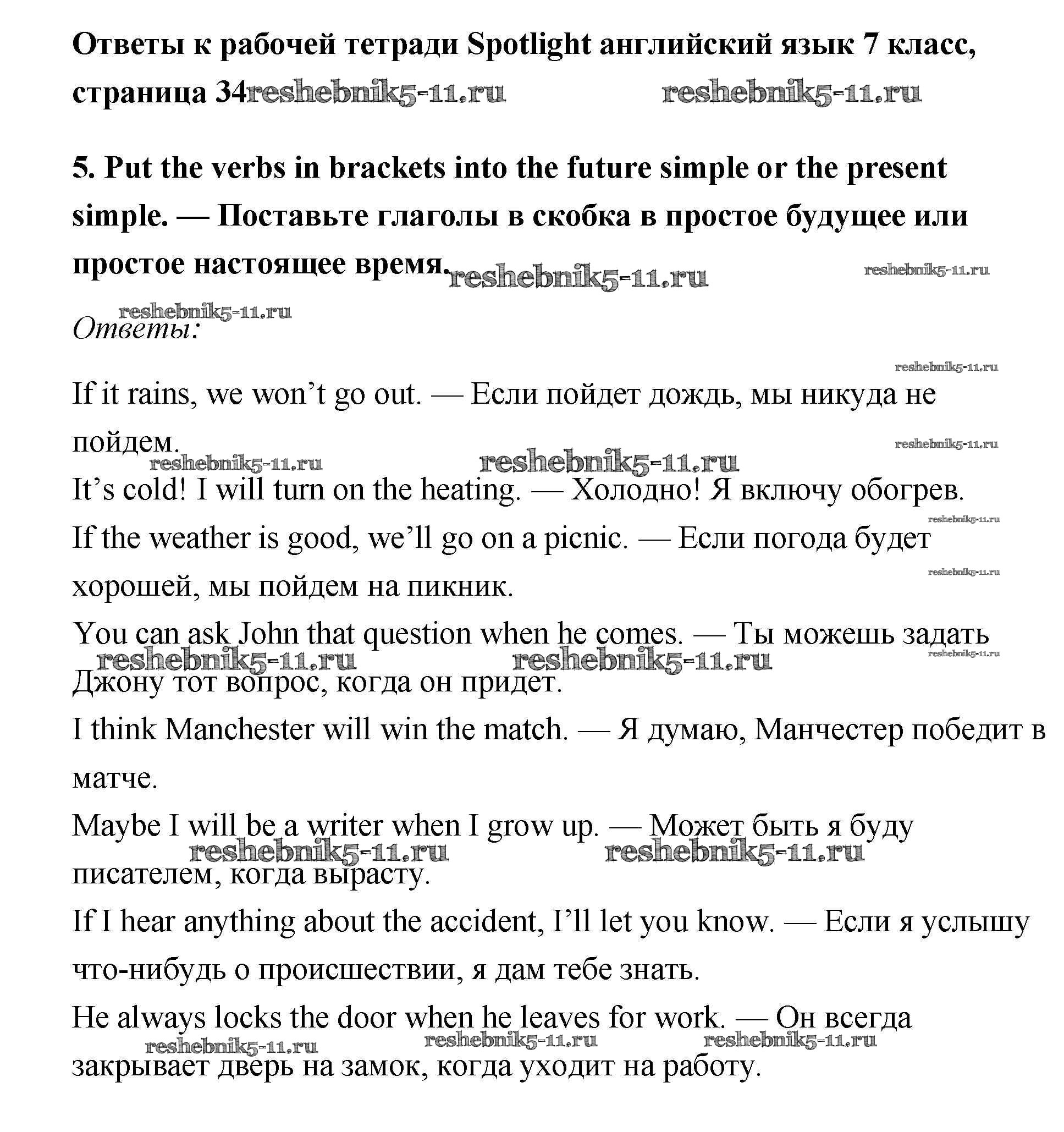 Готовая домашняя работа с ответами по Английскому языку за 7 класс Ваулина, Подоляко, Эванс, Дули Рабочая тетрадь Spotlight Просвещение 2015 ФГОС - Grammar Practice 5