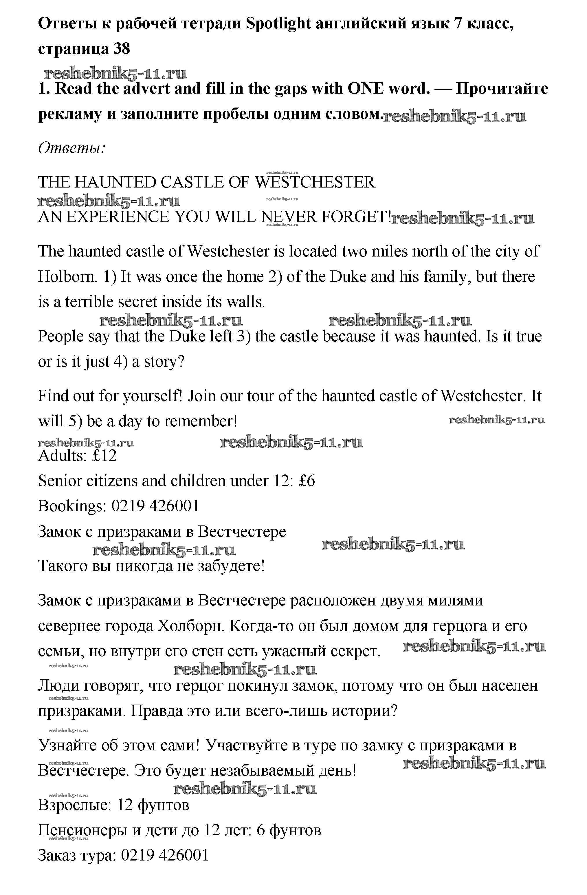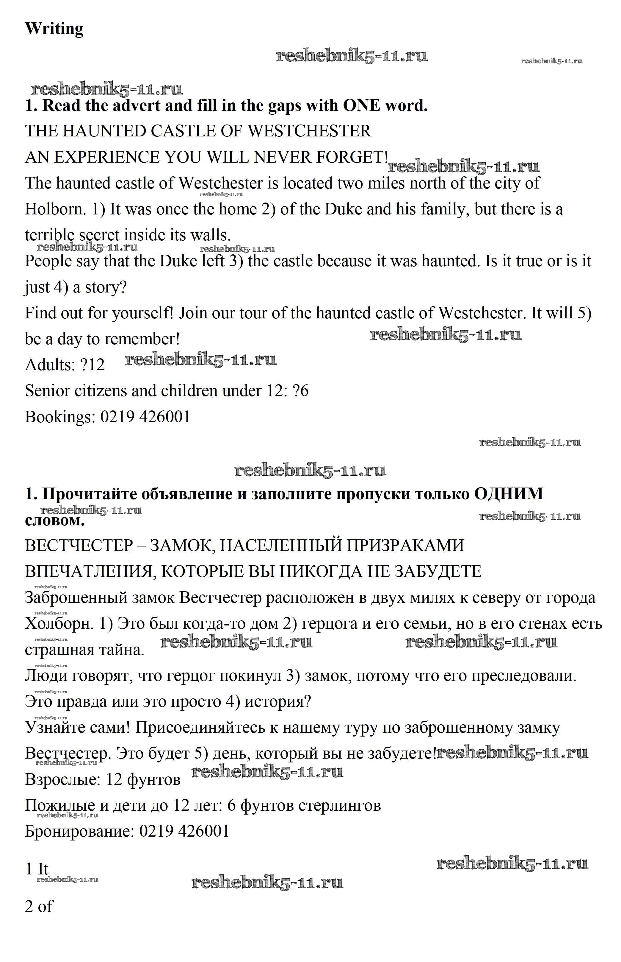 Готовая домашняя работа с ответами по Английскому языку за 7 класс Ваулина, Подоляко, Эванс, Дули Рабочая тетрадь Spotlight Просвещение 2015 ФГОС - Writing 1
