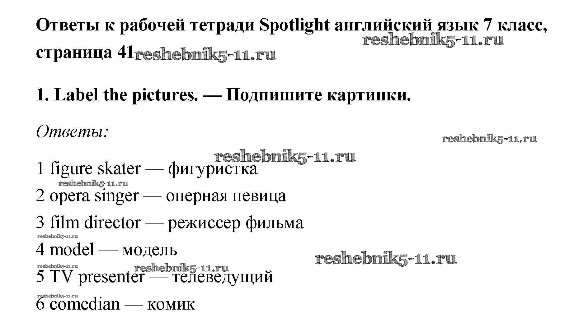 Готовая домашняя работа с ответами по Английскому языку за 7 класс Ваулина, Подоляко, Эванс, Дули Рабочая тетрадь Spotlight Просвещение 2015 ФГОС - Часть 7a 1