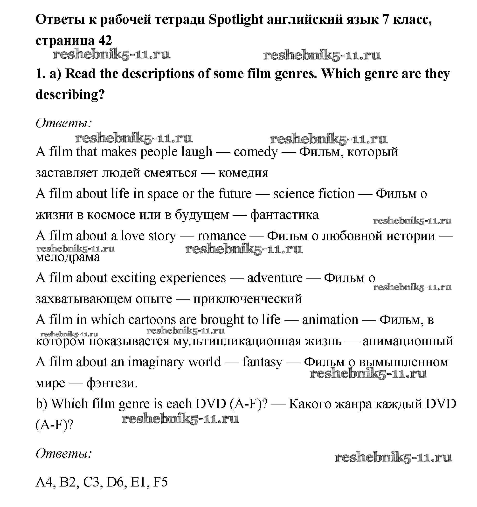 Готовая домашняя работа с ответами по Английскому языку за 7 класс Ваулина, Подоляко, Эванс, Дули Рабочая тетрадь Spotlight Просвещение 2015 ФГОС - Часть 7b 1