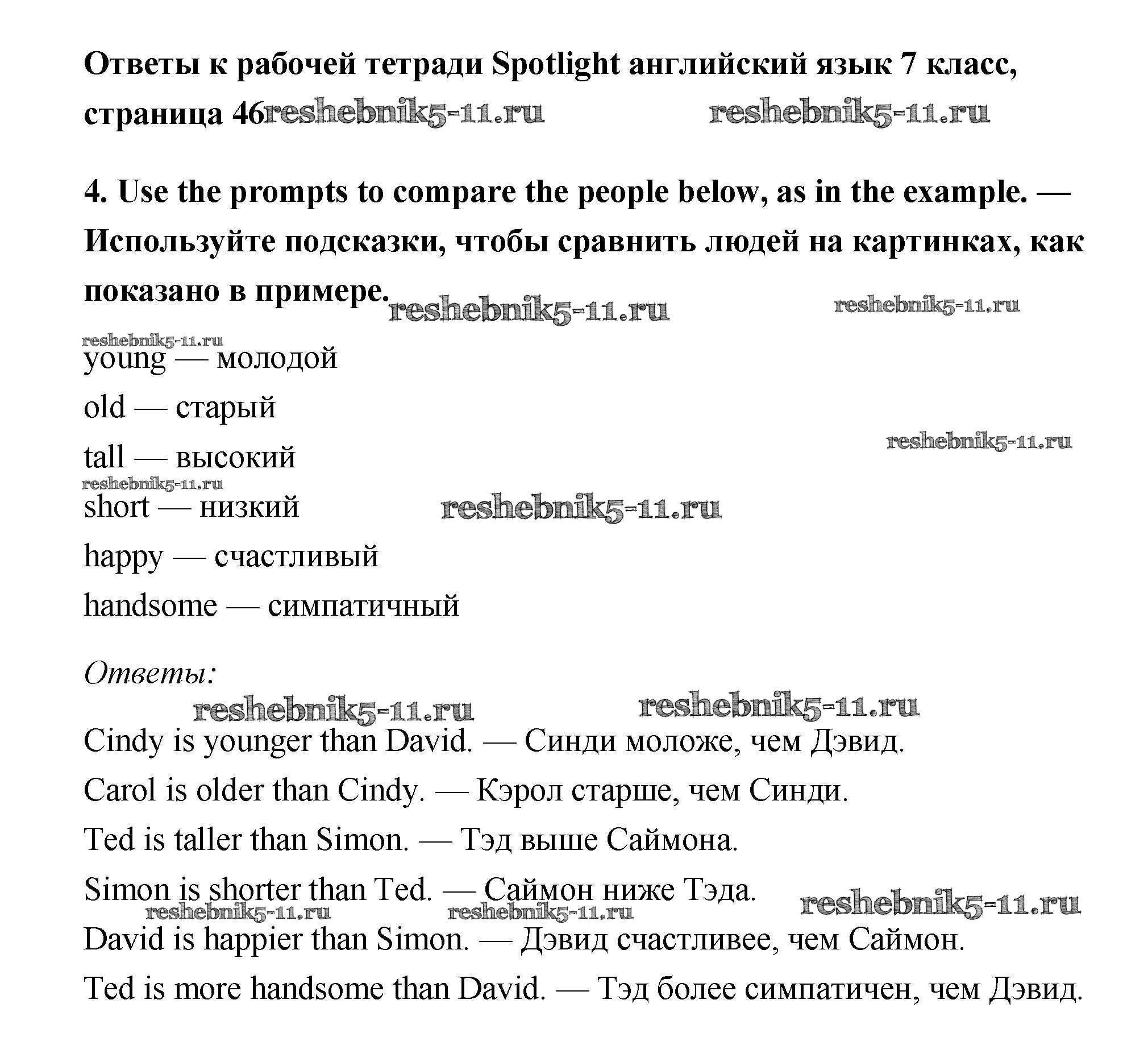 Готовая домашняя работа с ответами по Английскому языку за 7 класс Ваулина, Подоляко, Эванс, Дули Рабочая тетрадь Spotlight Просвещение 2015 ФГОС - Grammar Practice 4