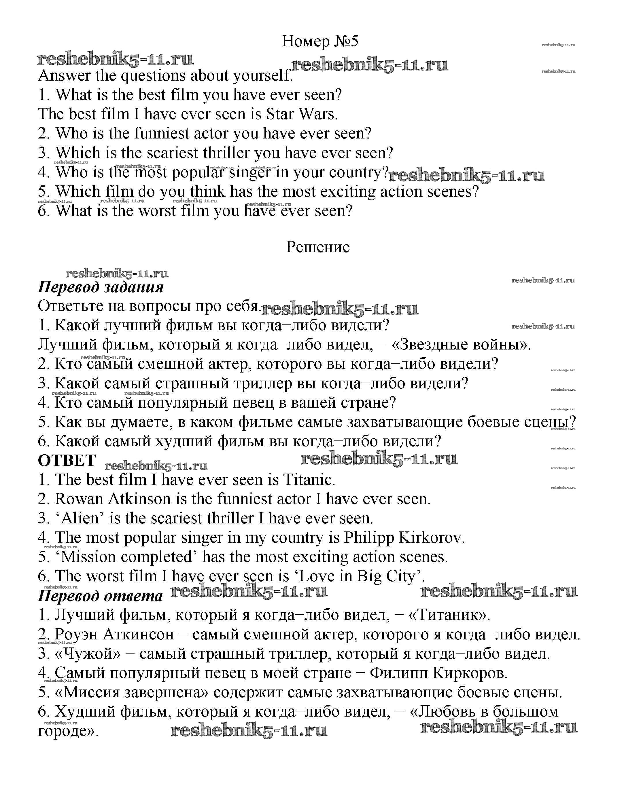 Готовая домашняя работа с ответами по Английскому языку за 7 класс Ваулина, Подоляко, Эванс, Дули Рабочая тетрадь Spotlight Просвещение 2015 ФГОС - Grammar Practice 5