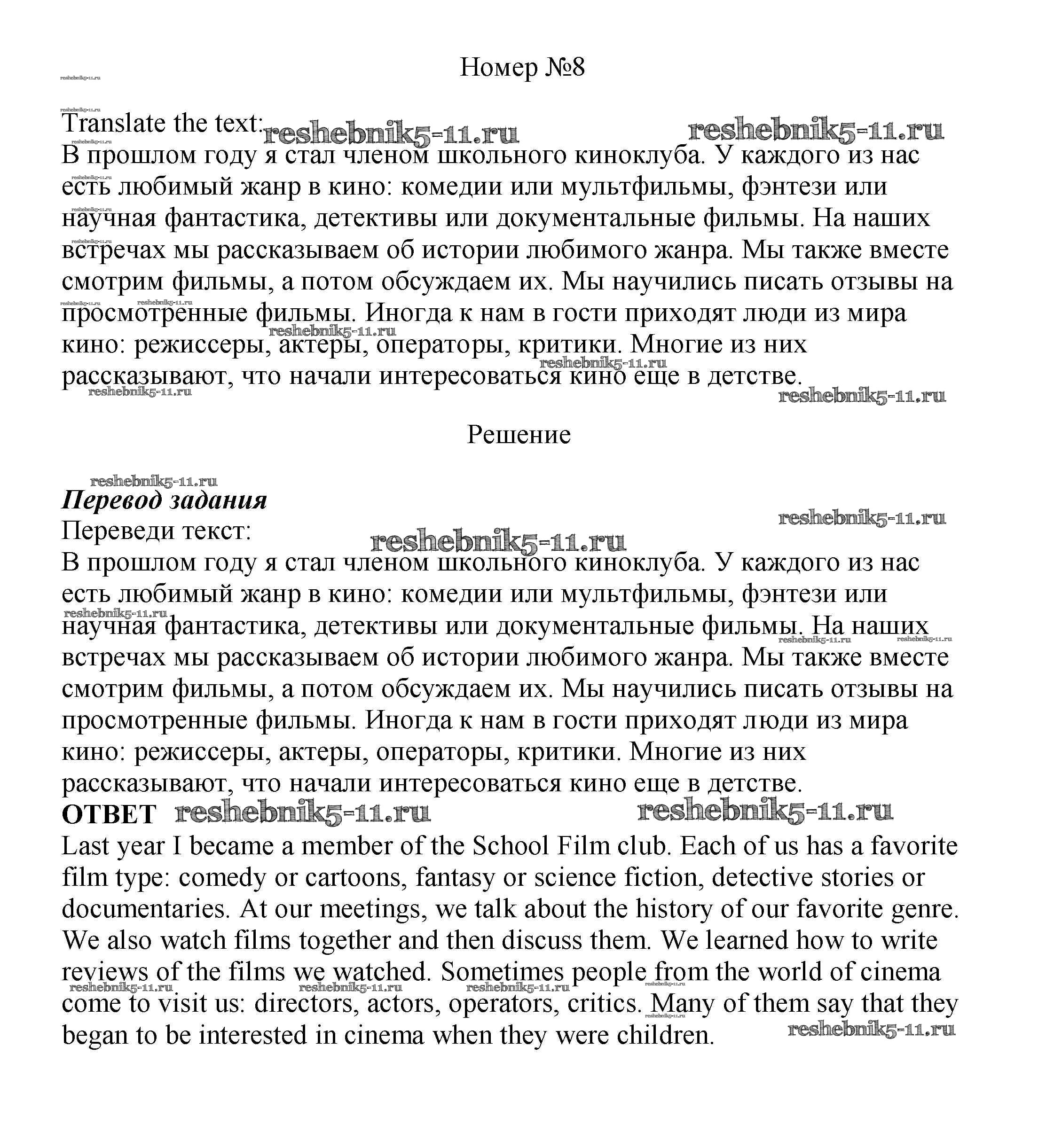 Готовая домашняя работа с ответами по Английскому языку за 7 класс Ваулина, Подоляко, Эванс, Дули Рабочая тетрадь Spotlight Просвещение 2015 ФГОС - Grammar Practice 8