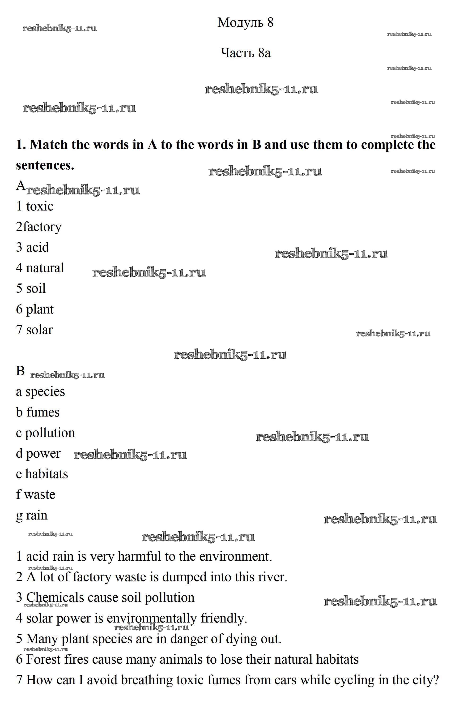 Готовая домашняя работа с ответами по Английскому языку за 7 класс Ваулина, Подоляко, Эванс, Дули Рабочая тетрадь Spotlight Просвещение 2015 ФГОС - Часть 8a 1