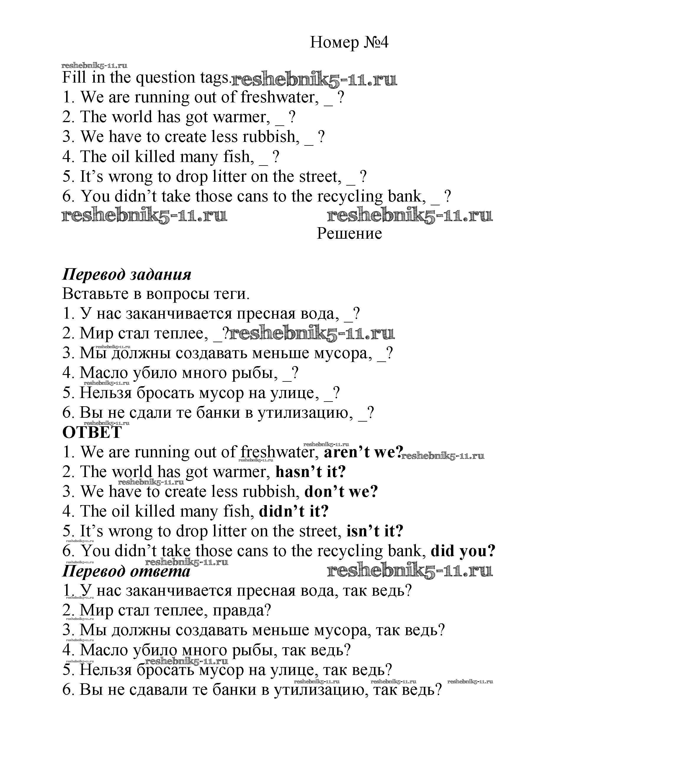 Готовая домашняя работа с ответами по Английскому языку за 7 класс Ваулина, Подоляко, Эванс, Дули Рабочая тетрадь Spotlight Просвещение 2015 ФГОС - Часть 8b 4