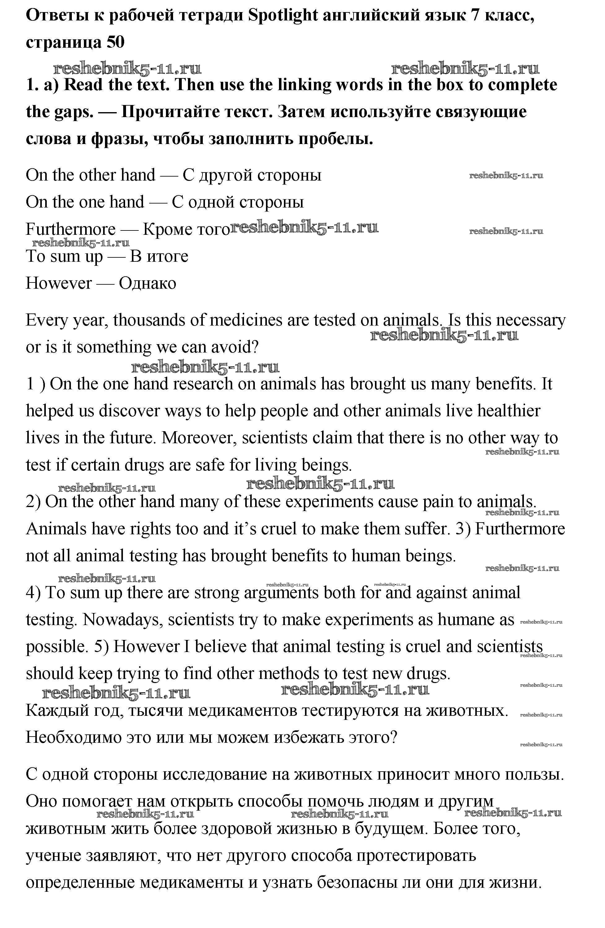 Готовая домашняя работа с ответами по Английскому языку за 7 класс Ваулина, Подоляко, Эванс, Дули Рабочая тетрадь Spotlight Просвещение 2015 ФГОС - Writing 1