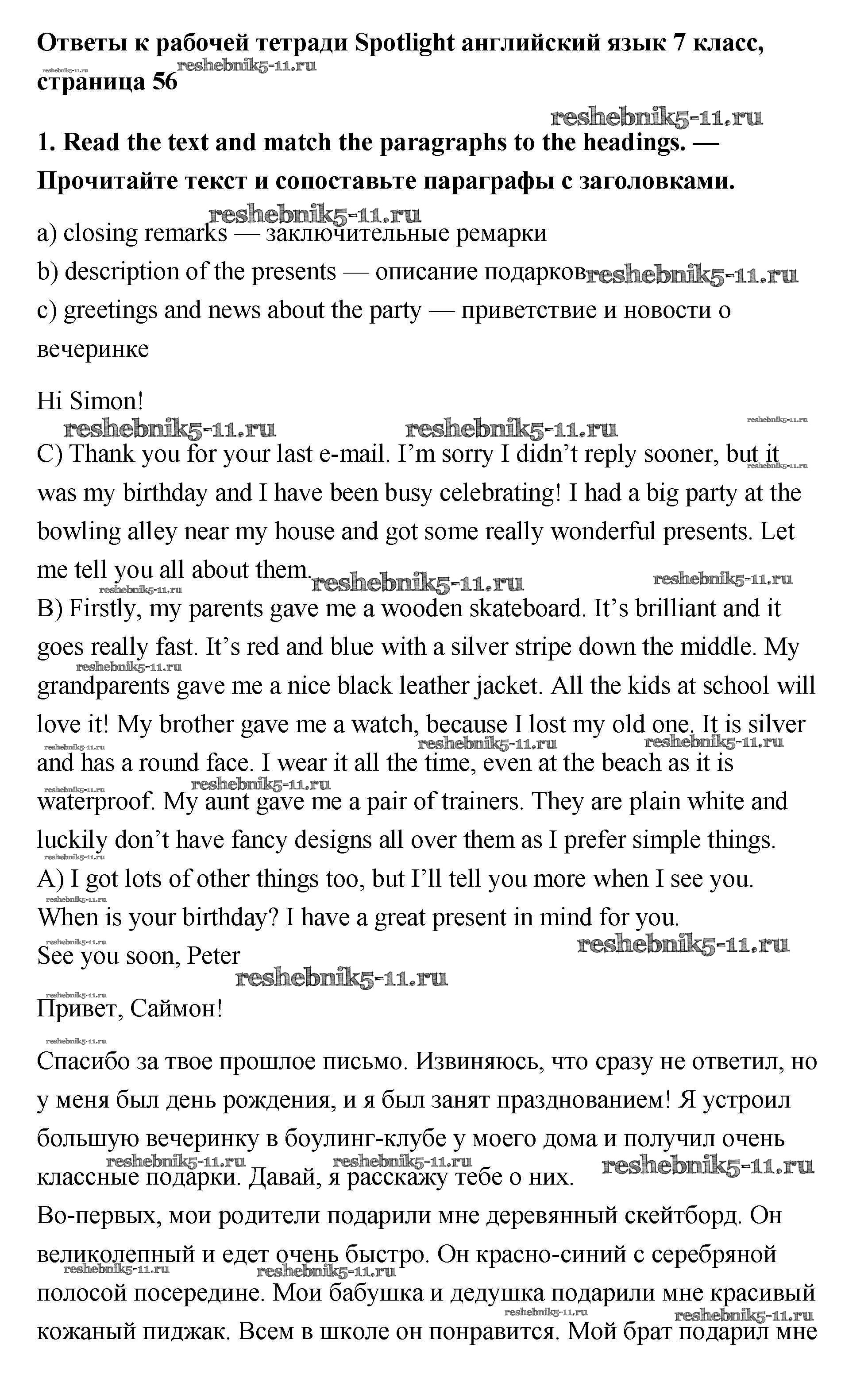Готовая домашняя работа с ответами по Английскому языку за 7 класс Ваулина, Подоляко, Эванс, Дули Рабочая тетрадь Spotlight Просвещение 2015 ФГОС - Writing 1