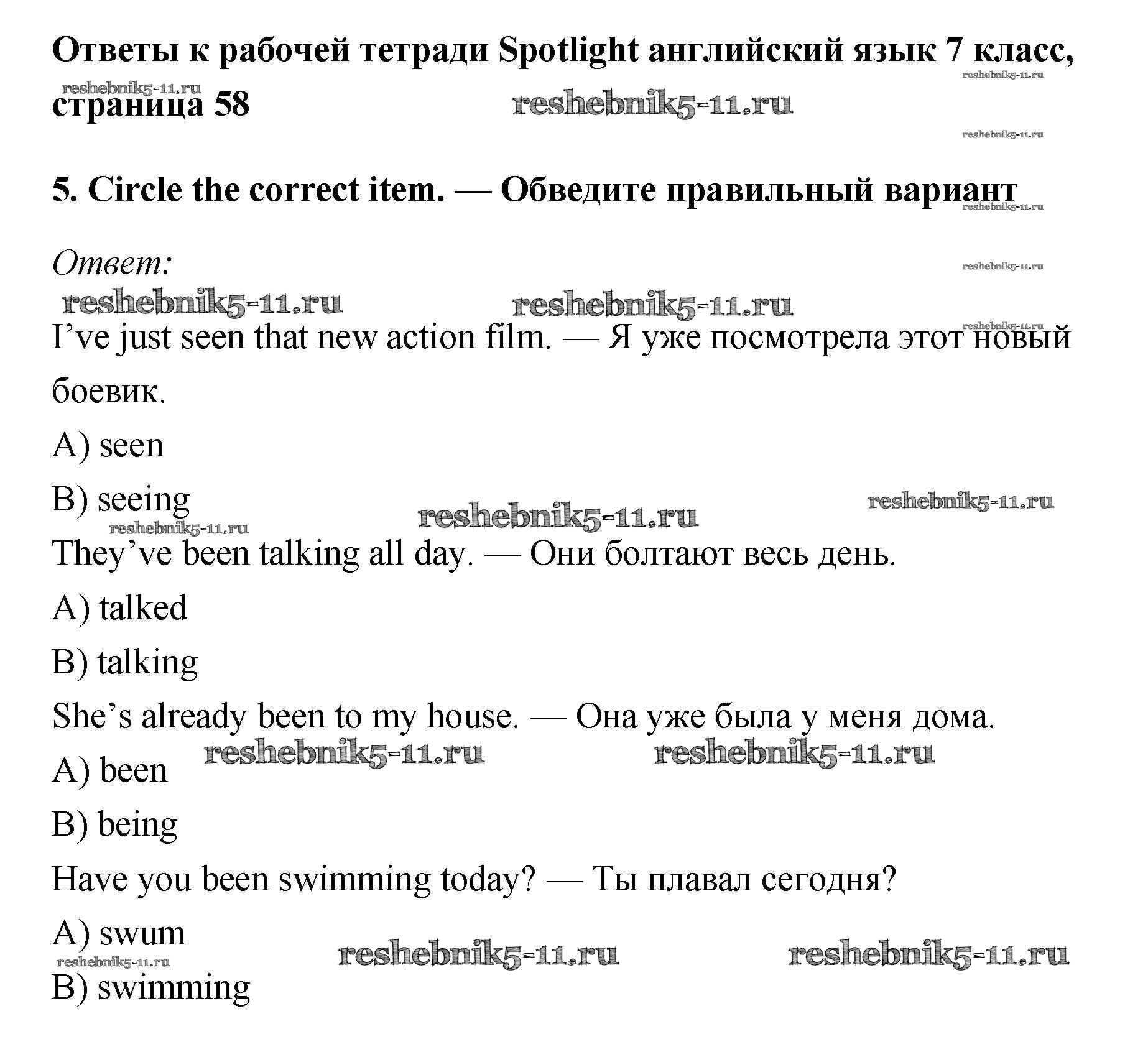 Готовая домашняя работа с ответами по Английскому языку за 7 класс Ваулина, Подоляко, Эванс, Дули Рабочая тетрадь Spotlight Просвещение 2015 ФГОС - Grammar Practice 5