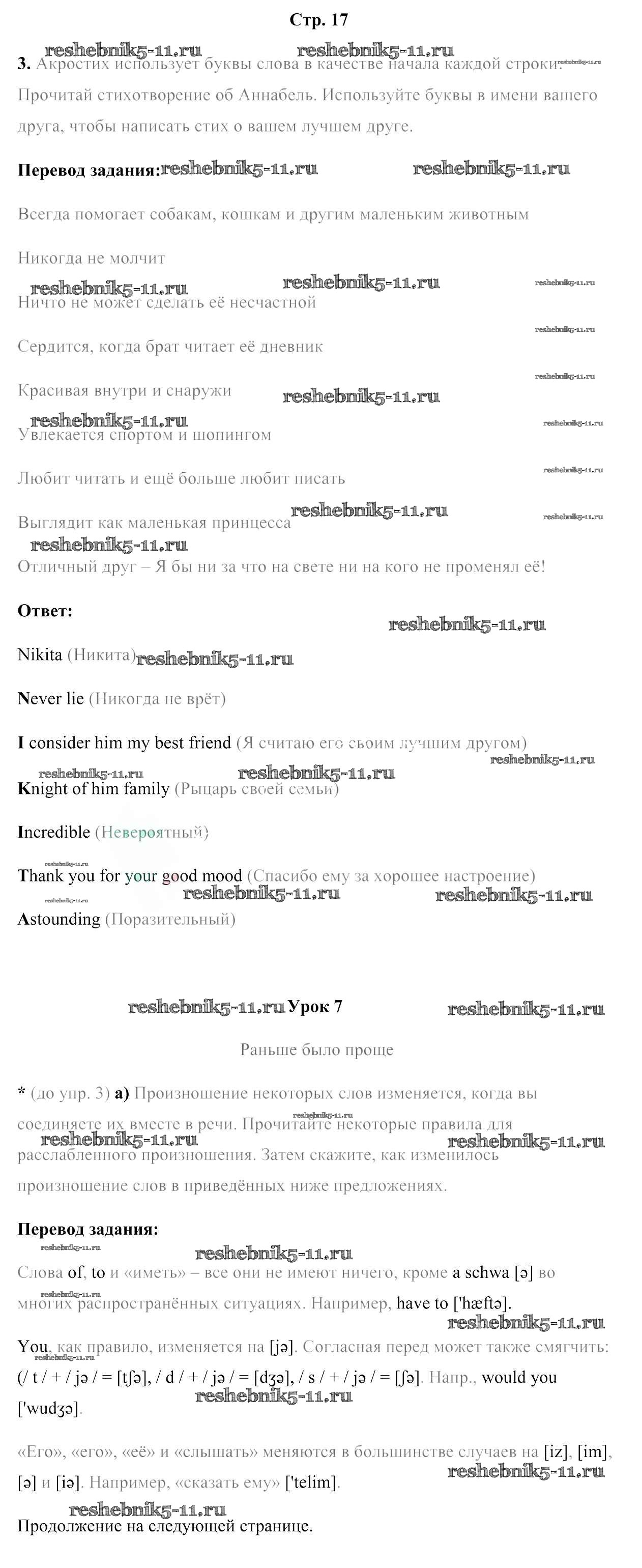 Готовая домашняя работа с ответами по Английскому языку за 7 класс Юхнель, Наумова, Демченко Рабочая тетрадь Часть 1, 2 Аверсэв 2016 ФГОС - Часть 1. Страницы 17