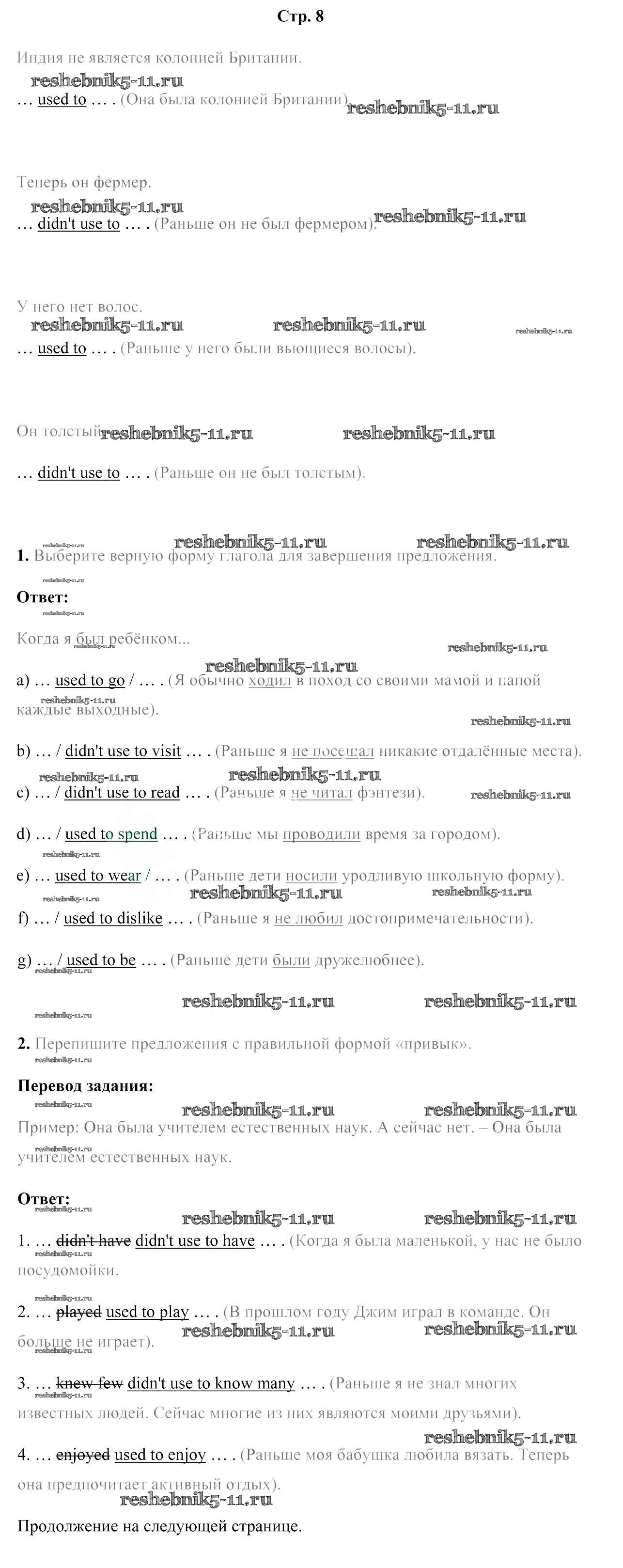 Готовая домашняя работа с ответами по Английскому языку за 7 класс Юхнель, Наумова, Демченко Рабочая тетрадь Часть 1, 2 Аверсэв 2016 ФГОС - Часть 1. Страницы 8